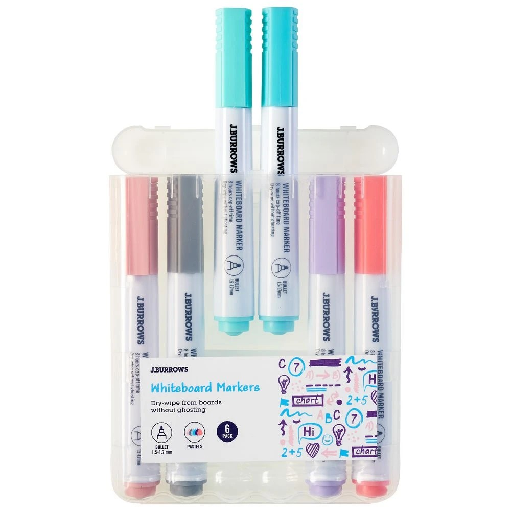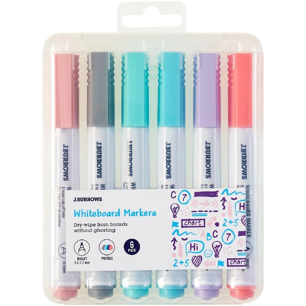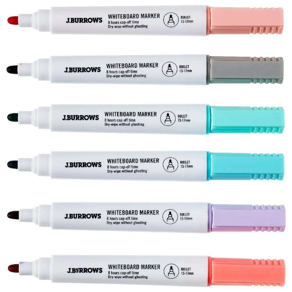 J.Burrows Whiteboard Markers Bullet Pastels 6 Pack