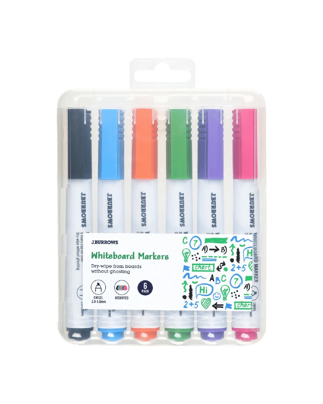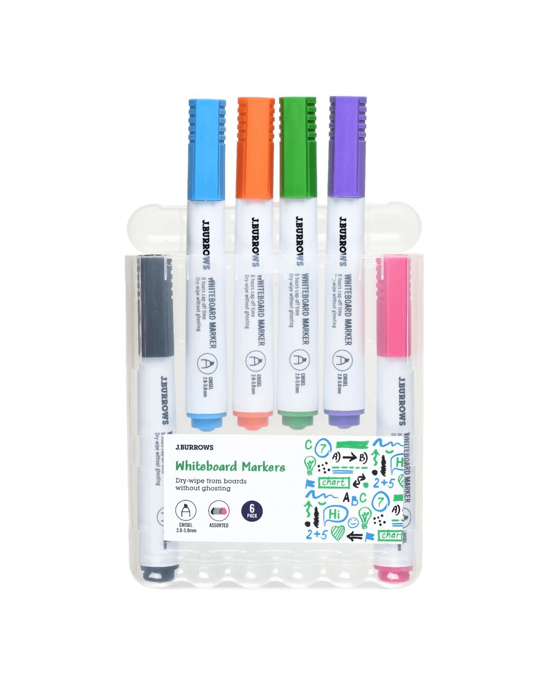 J.Burrows Whiteboard Markers Chisel Assorted 6 Pack