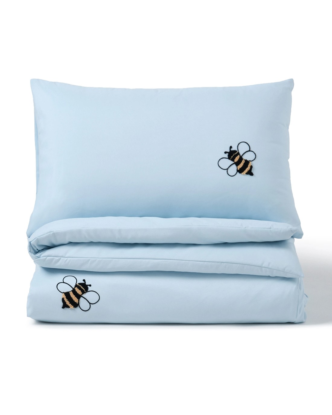Jack & Ava Bumbly the Bee Embroidered Kids Quilt Cover Set - Single Bed - Sky Blue