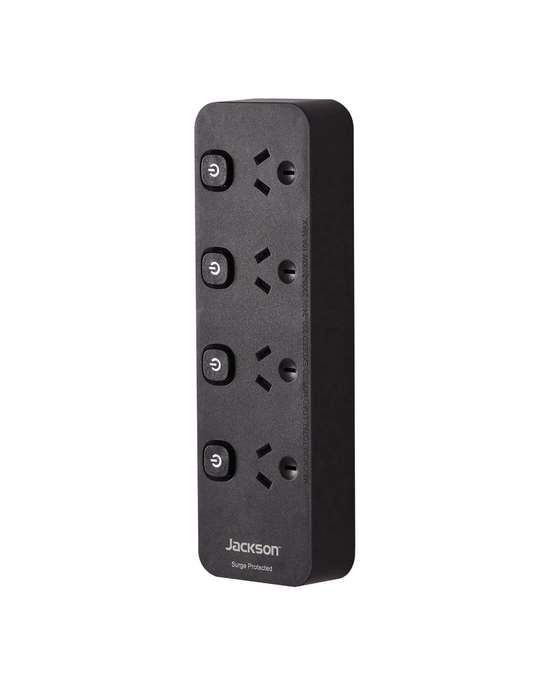 Sold by OfficeworksJackson 4 Outlet Switched Powerboard Surge Protection Black