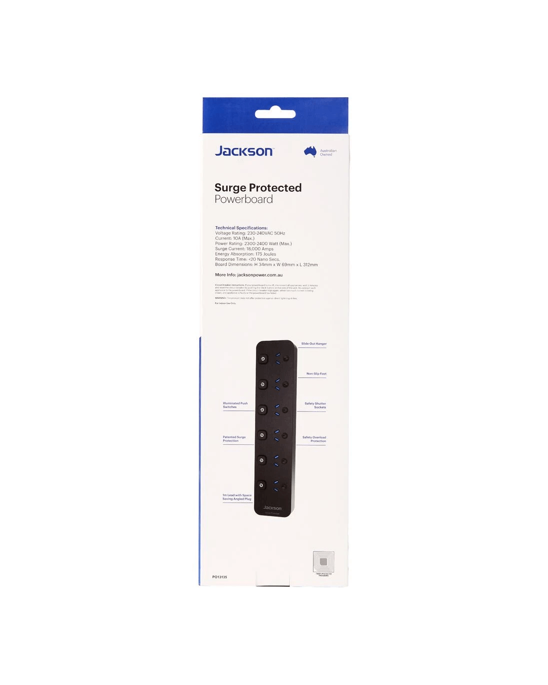 This Jackson 4 Outlet Powerboard is perfect for use in your home or workspace to instantly expand your power capacity. Each outlet is individually switched so you can enjoy greater control over your appliances.