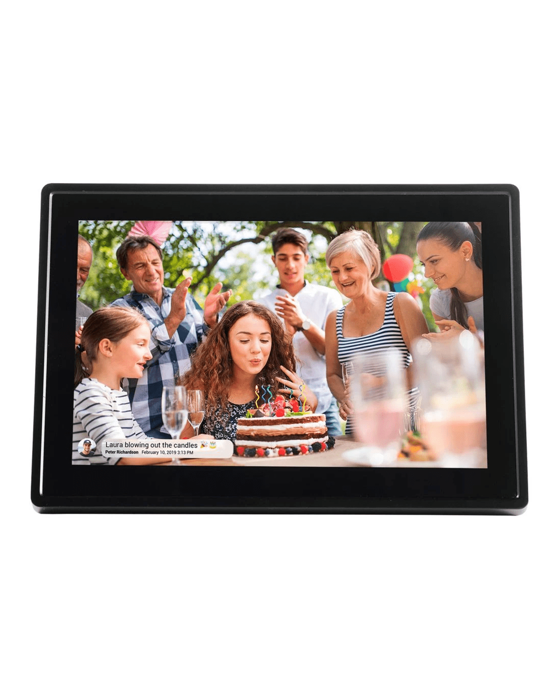 You can display slideshows of photos and short videos sent by your loved ones on this Frameo 10" Smart Photo Frame. It's easy to use, touchscreen interface allows you to choose who you receive images from; simply create a share code for your family and friends to input into their Frameo Apps so they can send memories to you. Once you receive the images via your app, you can create personalised slideshows out of their photos or short clips, alongside your chosen caption, to display on your Frameo Digital Frame.
