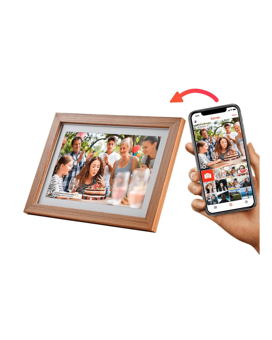- Choose who sends you photos for your display, simply create a share code for your Frameo using the touchscreen interface.