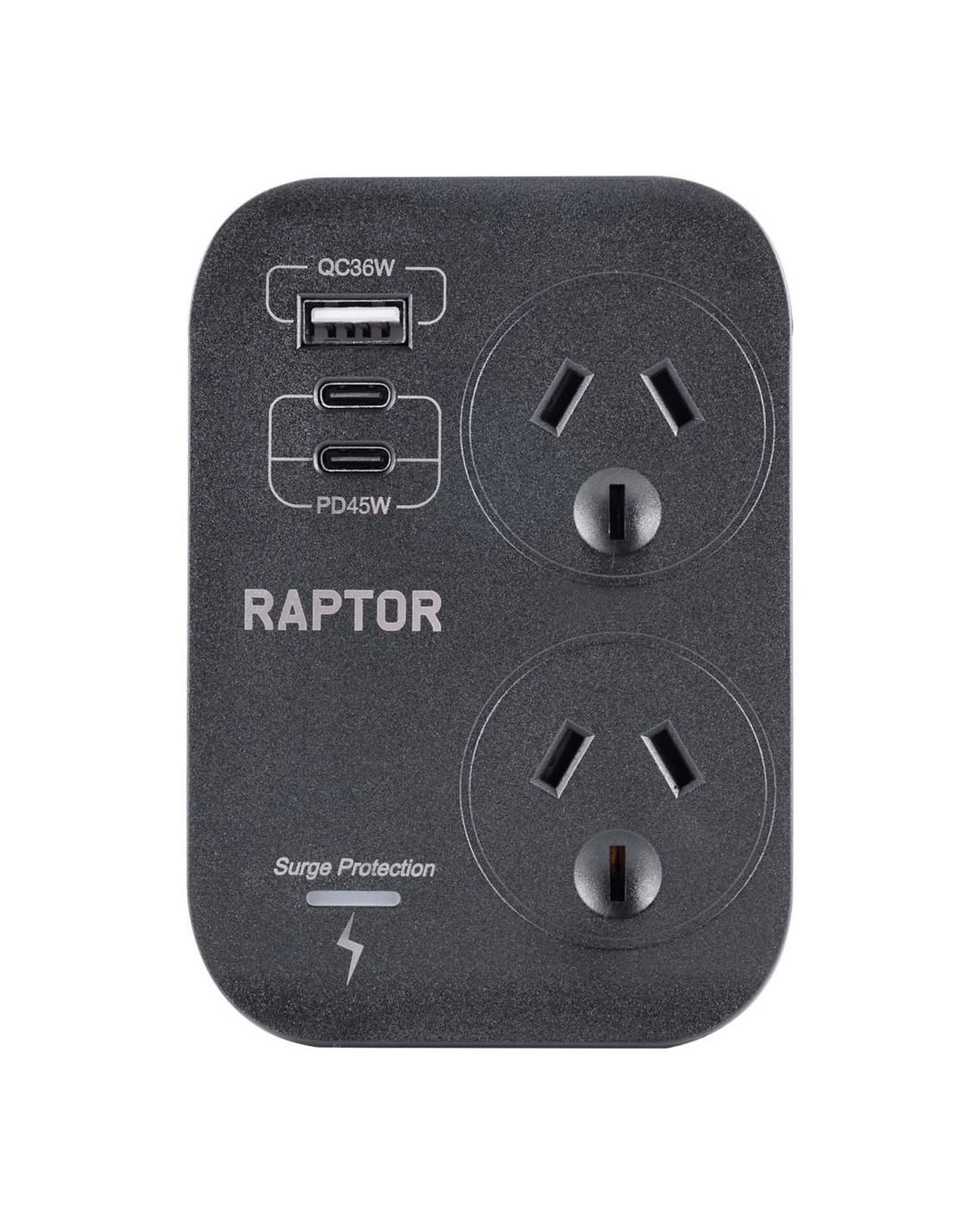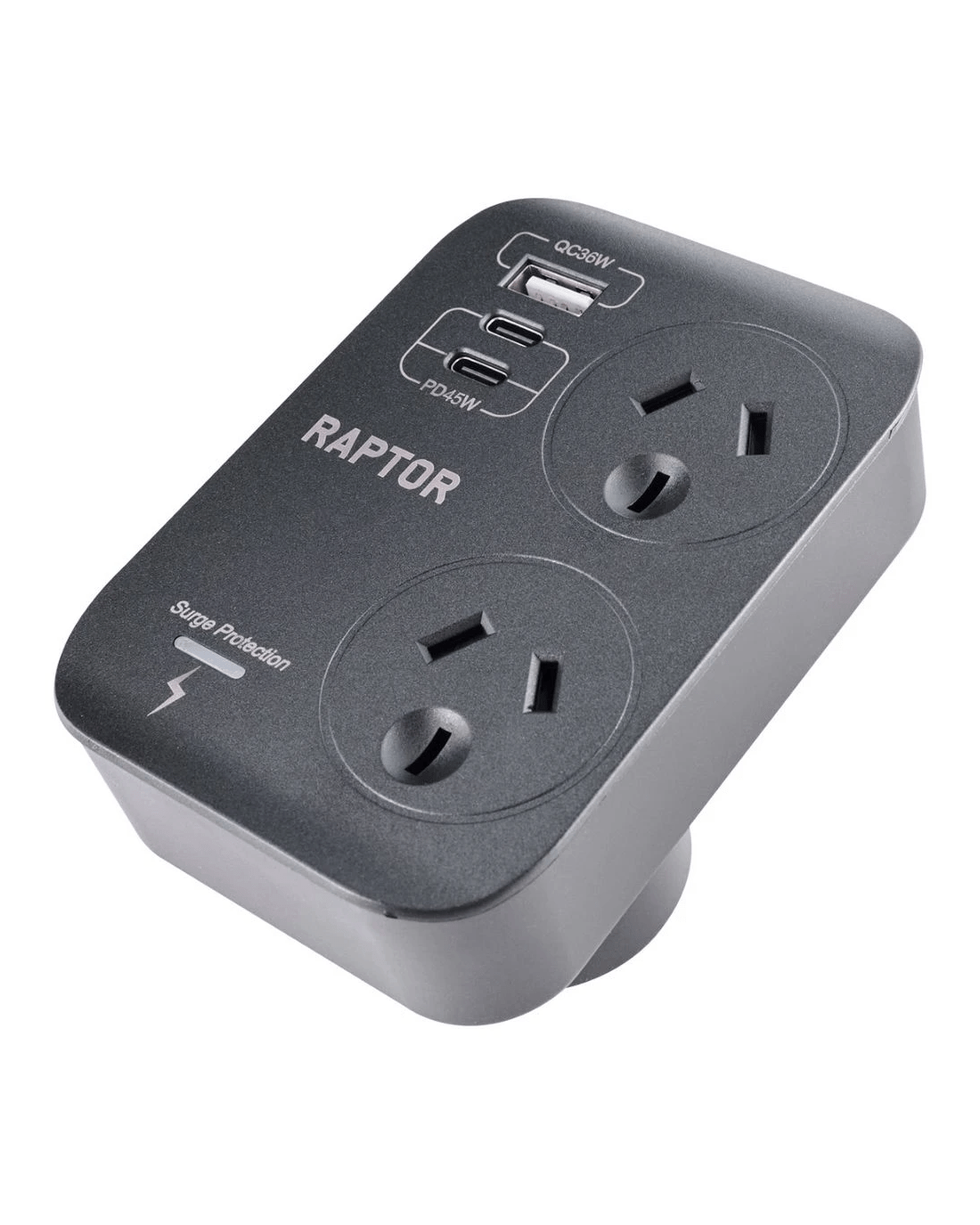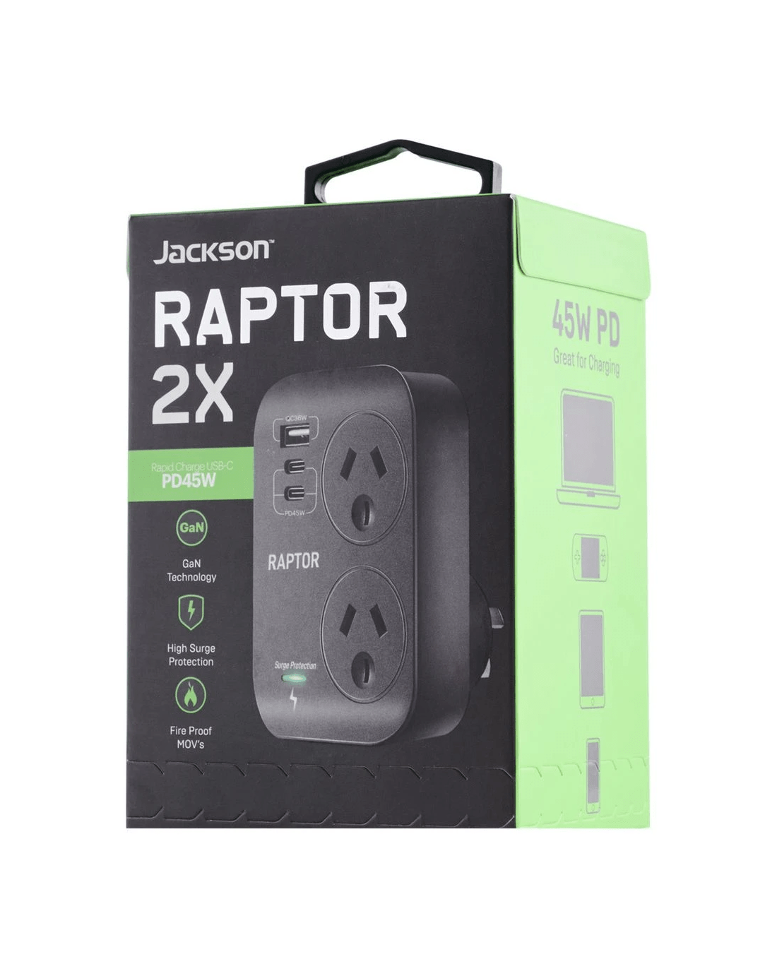 This Jackson Raptor Surge Protector features patented Raptor High Surge Protection and fire-resistant MOVs designed to help safeguard your devices during power surges. Equipped with 2 AC ports, 2 USB-C Power Delivery (PD) ports (45W each) and 1 USB-A Quick Charge (QC) port (36W), it supports fast charging for compatible laptops, phones, and other electronics. Plus, it’s designed in Australia for performance and portability, and it’s a practical choice for travel, remote work setups, or gaming on the go.