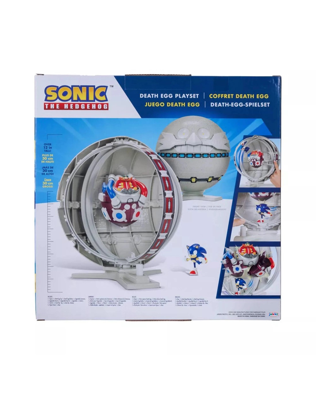 Sonic the Hedgehog™ is one of the world's most iconic video game characters of all time. Along with his friends Tails, Knuckles and Amy, Sonic speeds around the planet to battle injustice and defeat his arch nemesis, the evil Dr. Eggman.Kid and fans can recreate the action from the world of Sonic the Hedgehog™ with the Death Egg Playset. Sonic faces Dr. Eggman again, but this time inside the Death Egg for an epic battle! The notorious Dr. Eggman sits in the Egg Heart as you run Sonic around the track to defeat him! Switch to a different track to find the perfect angle of attack. Time it right to strike the Egg Heart multiple times to defeat Dr. Eggman and watch it explode. The playset comes with an exclusive Running-Sonic figure and Death Egg on a stand. Reassemble the Egg Heart to battle again. The Death Egg Playset stands over 12-inches high, and is great to display in your home. There are two tracks that you can move Sonic along. Guide your Sonic figure around the track to do a 360 spin! The track works with the included Sonic figure and other Sonic 2.5” Figures from JAKKS (other figures sold separately. Performance may vary with each figure). Build your world of Sonic the Hedgehog toys from Jakks by adding more Sonic friends, playsets and accessories (each sold separately). The playset does not use batteries. Assembly required. Some children will require assistance with assembly. Ages: 7+