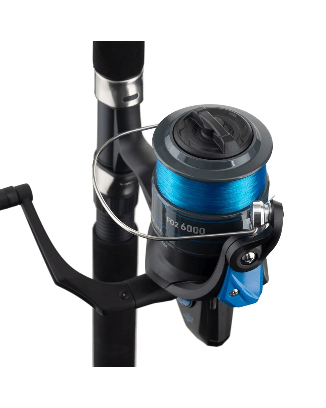 Featuring a brass pinion gear and spooled with 175 yards of 18lb monofilament line, the single ball bearing Focus 6000 reel is perfect for many land-based fishing applications.