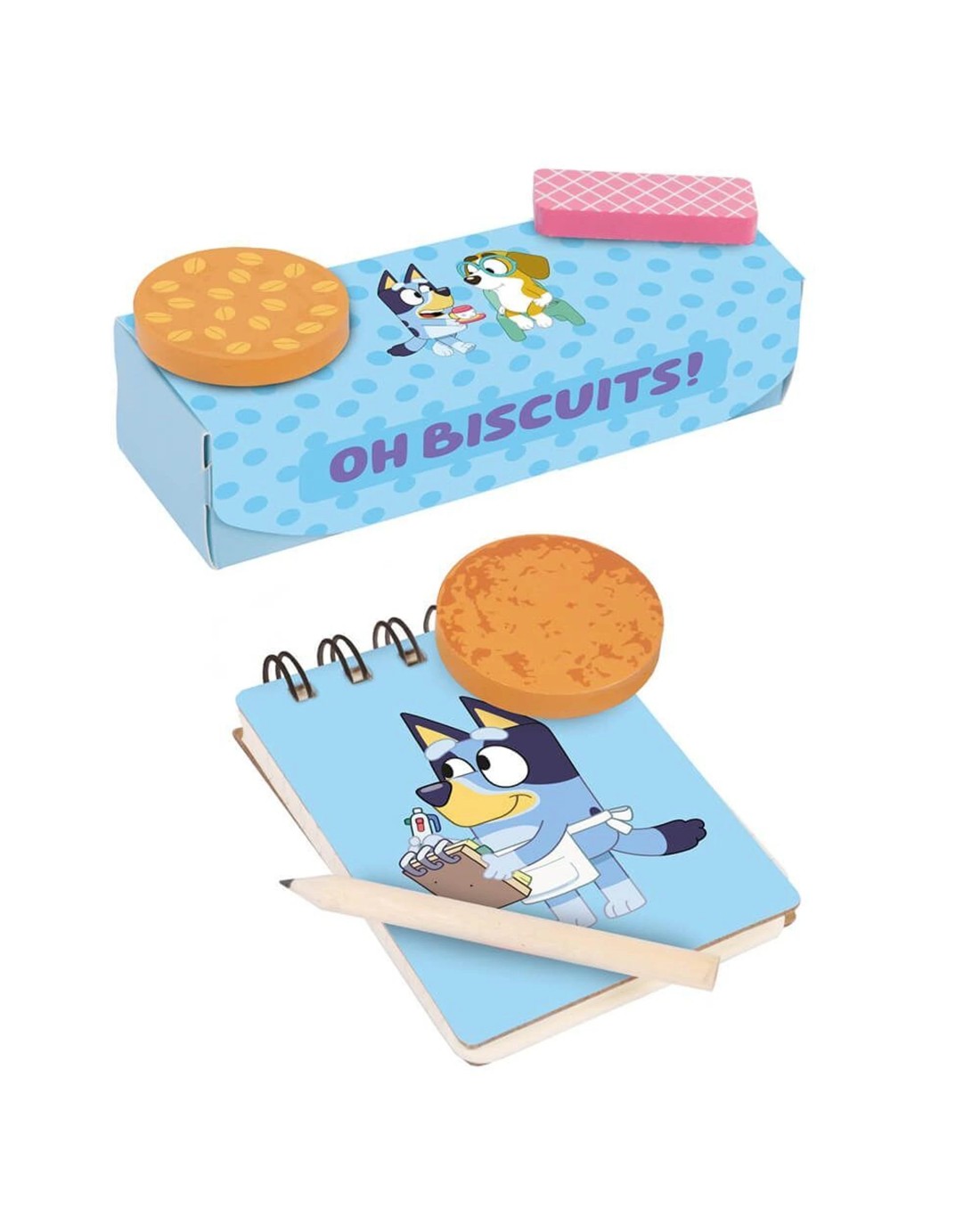 It's Tea Time! Little ones can serve up a perfect cup of tea to any lucky visitor with this charming wooden Bluey Tea Party Set. With a notepad in hand, jot down orders and serve the drinks and biscuits on the wooden tray. Complete with teabags, teacups and, of course, 3 types of biscuits for dunking, this 18 piece Tea Party set is a must for pretend play! A great set to spark imagination alongside Bluey. The Bluey Tea Party Set is made from responsibly sourced materials, the wooden products are certified by the FSC. Ages: 3+