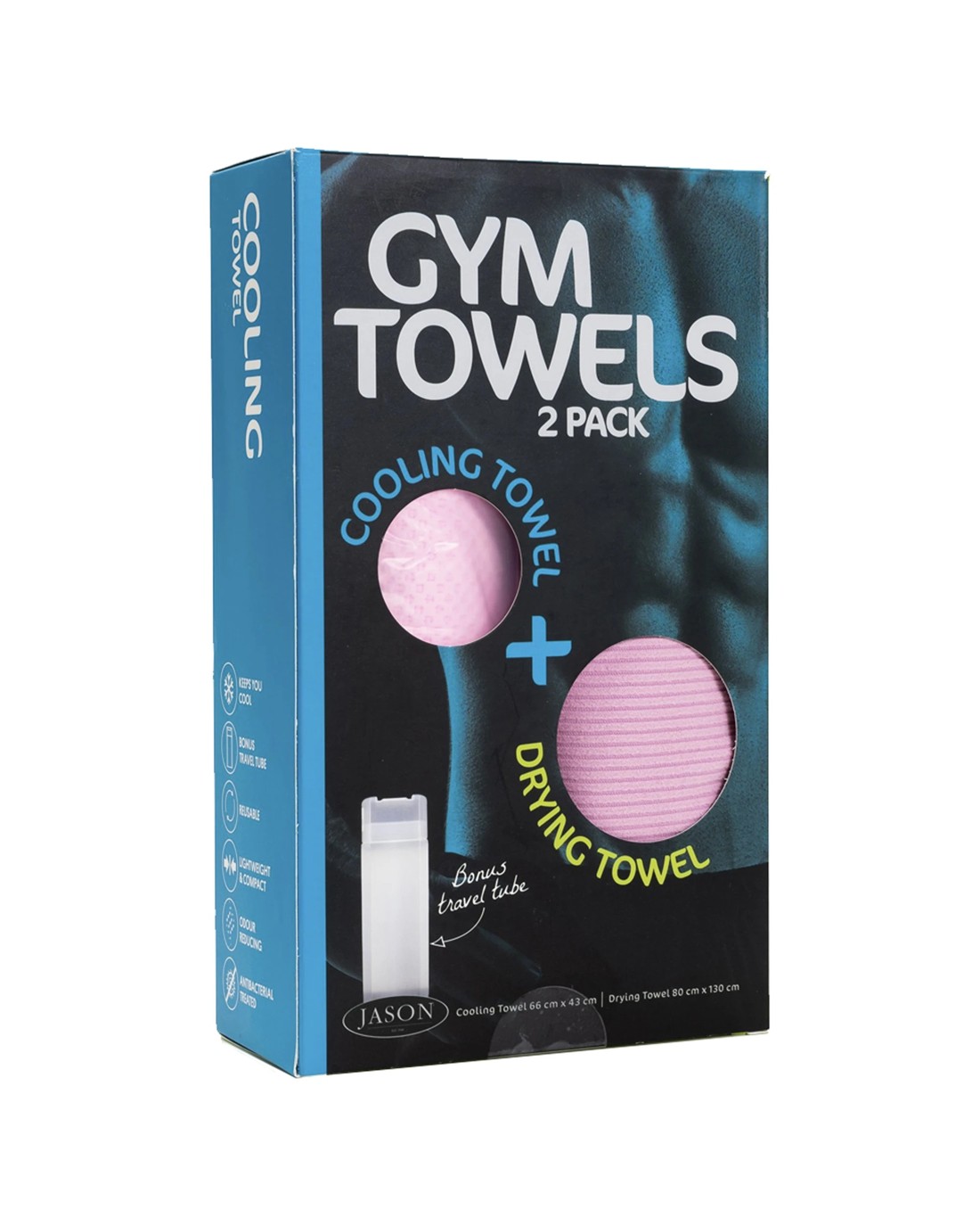 Sold by KG SuperStoreJason 2PK Sports Gym Towel Set Drying Cooling With Tube Polyester Polyamide - Pink