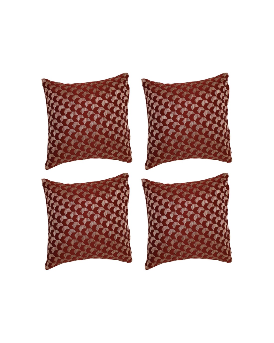 The Jason Commercial 4PK Regency Cushion Filled 45x45cm is designed for enhancing your interior decor with comfortable and stylish cushions. These square cushions feature a textured geometric pattern in shades of red and beige, adding colour and visual interest to sofas, beds, or chairs.