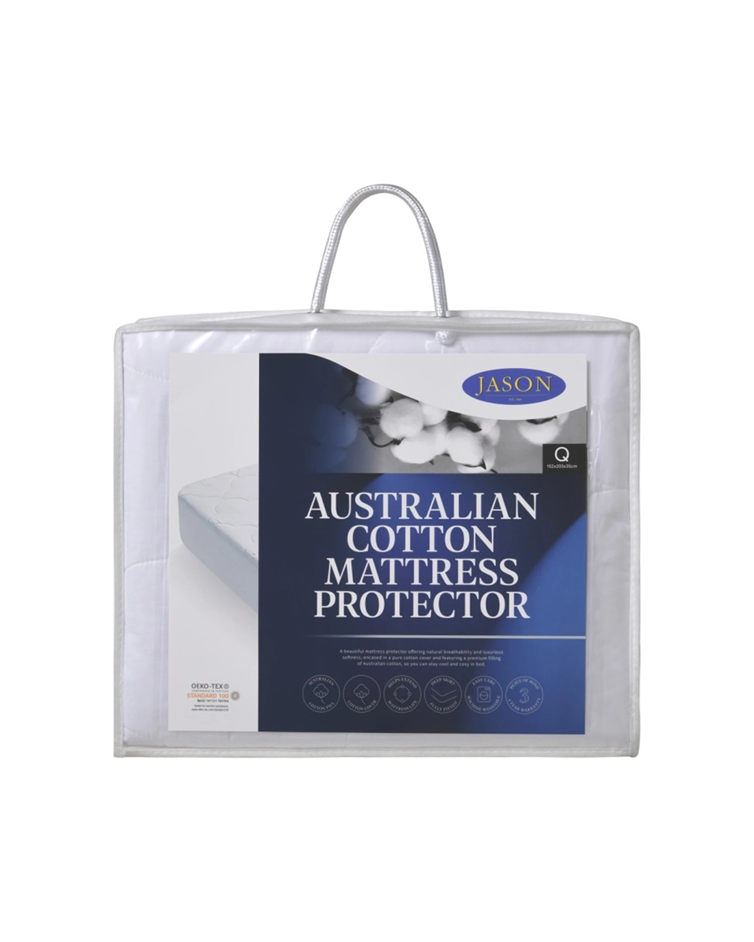 The JASON Australian cotton mattress protector is designed for protecting your mattress while enhancing your sleeping comfort. Made with high-quality Australian cotton encased in a breathable cotton percale fabric, it offers a soft and durable bedding solution that helps maintain a hygienic sleep environment.
