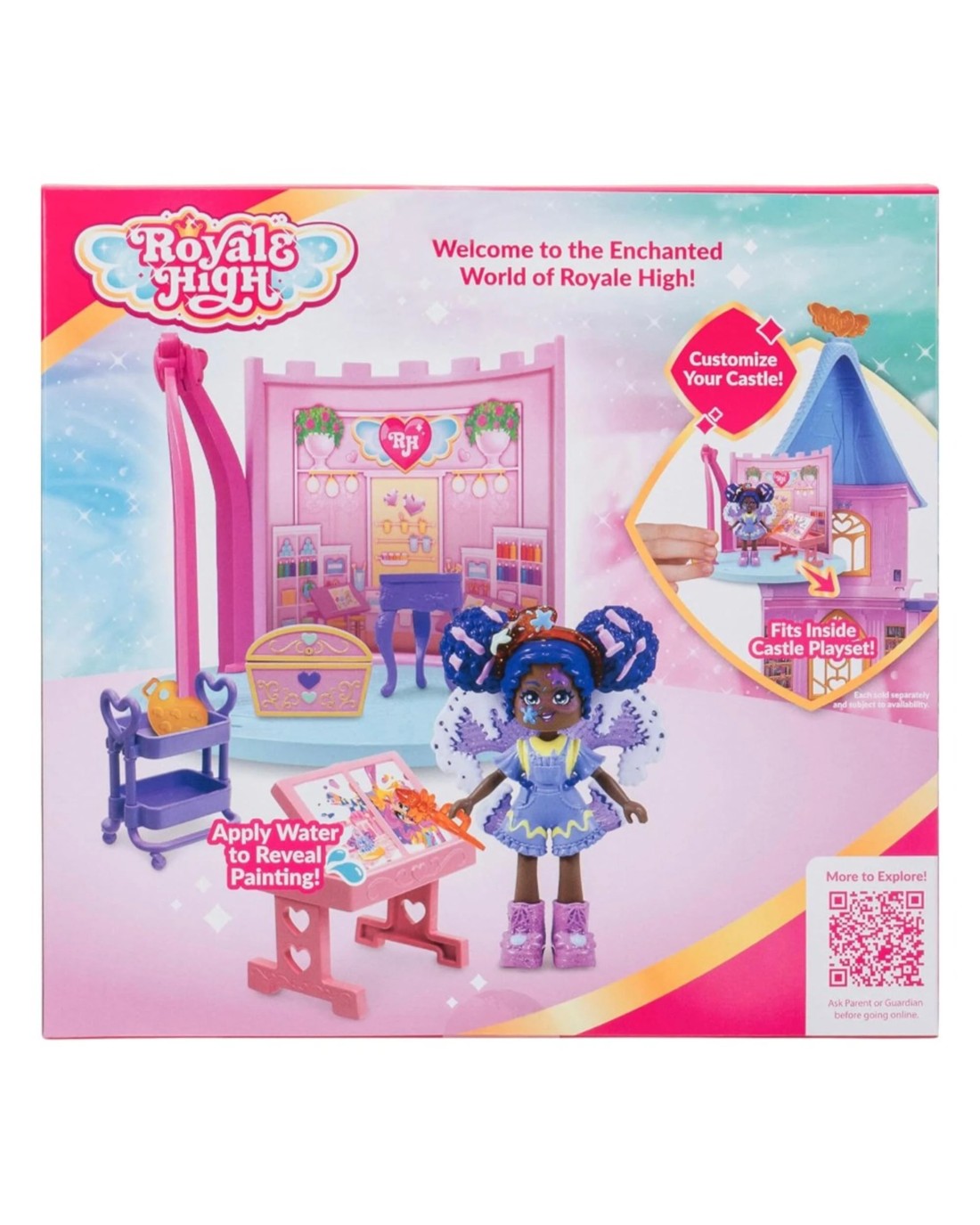VIRTUAL ITEM CODE: Each doll has a redeemable virtual item code; apply light pressure when scratching the coating to reveal the code. If you have questions or concerns about your virtual item code, please contact JazwaresROYALE HIGH: Embark on a magical journey through various realms with game-inspired dolls and unleash your true fashion sense in Royale High's virtual worldART CLASS PLAYSET: 3" Doll comes with an art table that reveals a painting when painted with water, a treasure chest that opens to hold the art palette and paint brush, and a heart tableCUSTOMIZE YOUR CASTLE: Add the Art Class Playset to the Royale High Castle Campus Playset (sold separately) to customize your castleOFFICIAL PRODUCT: Officially licensed Royale High product from JazwaresItem Specifics