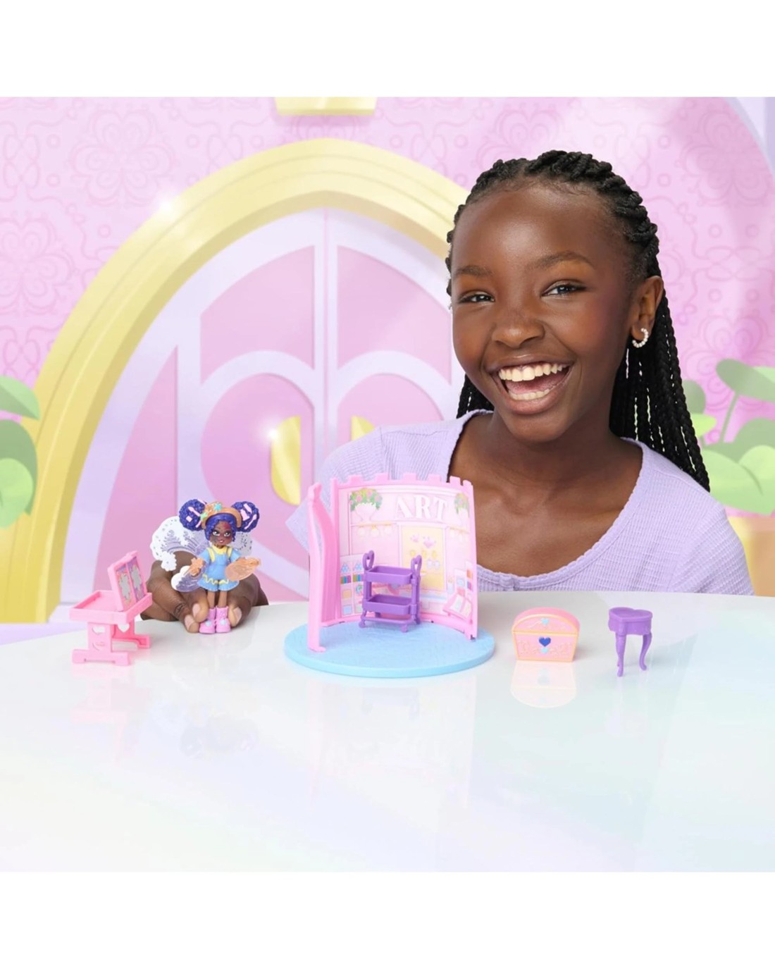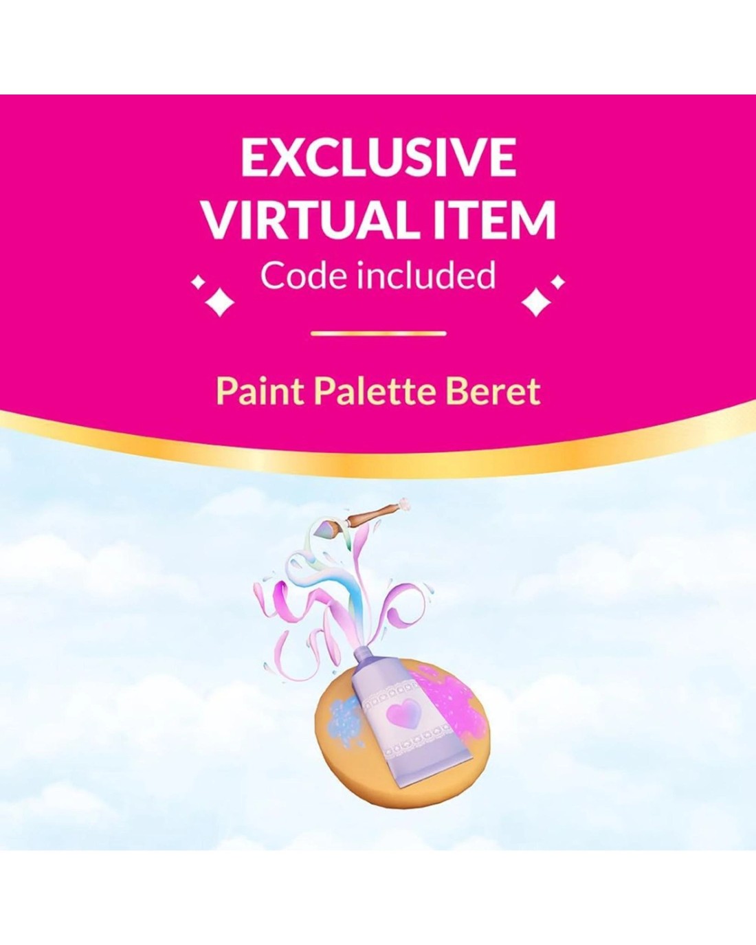 Discover the enchanting world of Royale High and unleash your inner fashionista with the game-inspired dolls. Elevate your play with the Art Class Playset, with a unique art table with a hidden painting that will be revealed when you apply water, a treasure chest to hold the art palette and paintbrush, and a charming heart table. For an even more personalized touch, add the Art Class Playset to the Royale High Castle Campus Playset (sold separately) and customize your very own castle. Redeem your virtual item code to receive a paint palette beret for your doll in all your gaming experiences. Ages 5 +