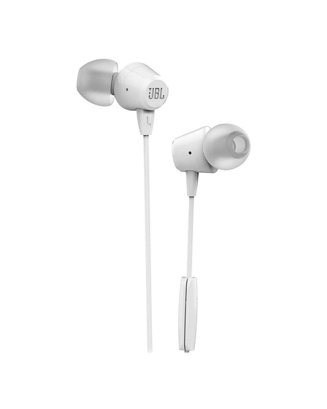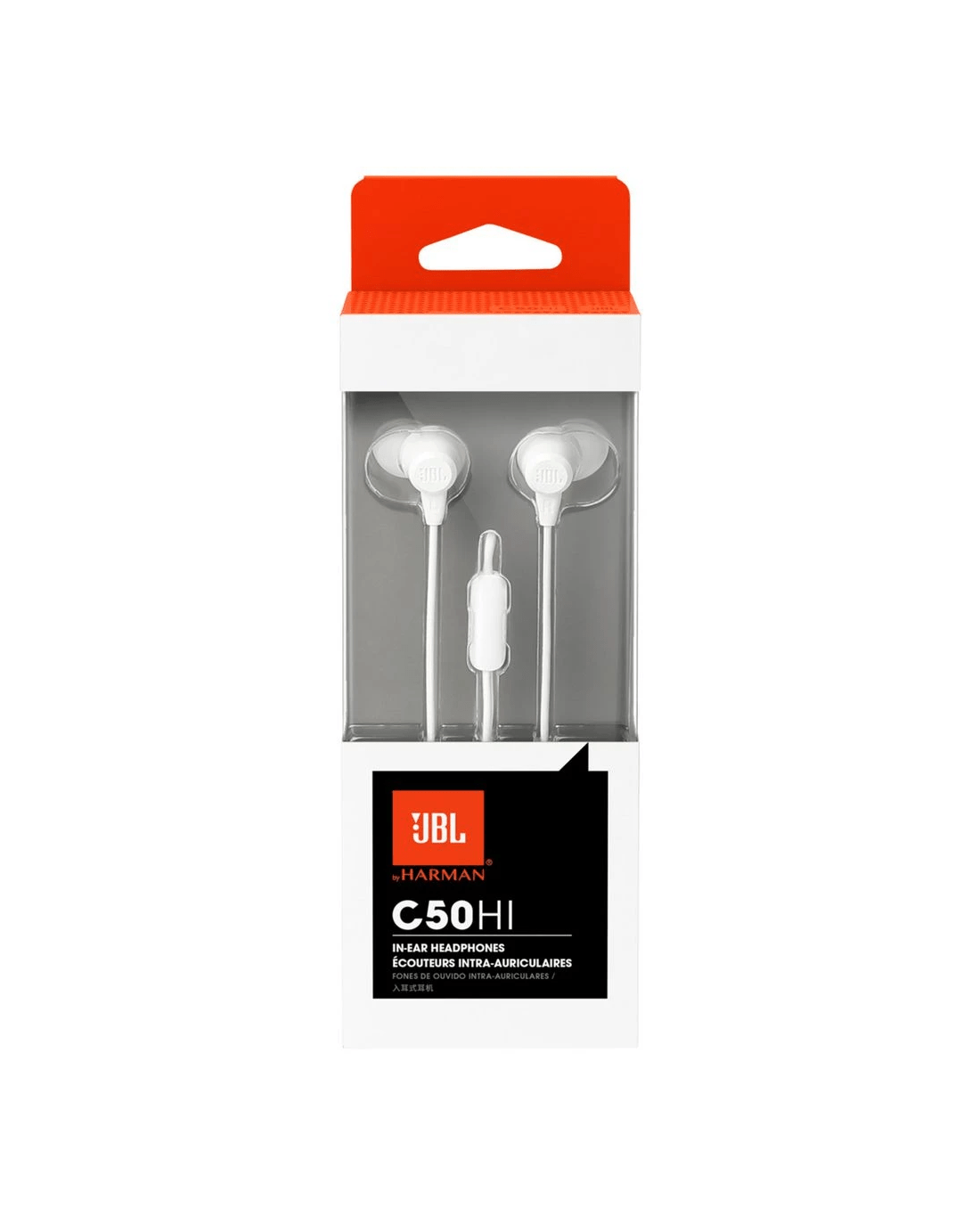 These JBL C50HI Earphones provide a simple and sleek way to enjoy your music. They have a simple plug-and-play wired connection and powerful bass, so you truly immerse in your tunes.