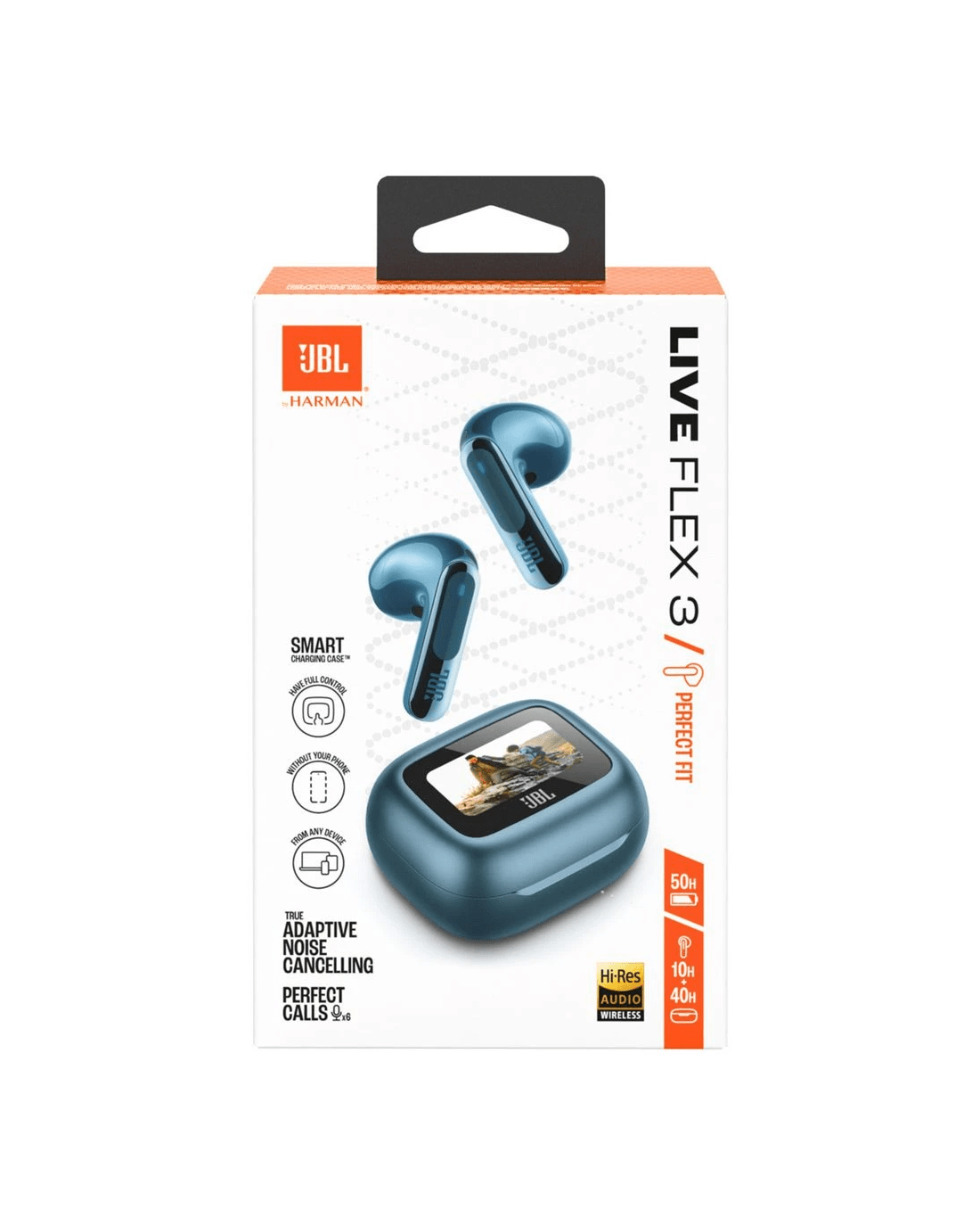 - This pack contains 1 x JBL Live Flex 3 Earbuds, 4 sizes of ear tips, 1 x USB-C cable, 1 x Smart Charging Case, 1 x Warranty Sheet, 1 x Product Safety Sheet.