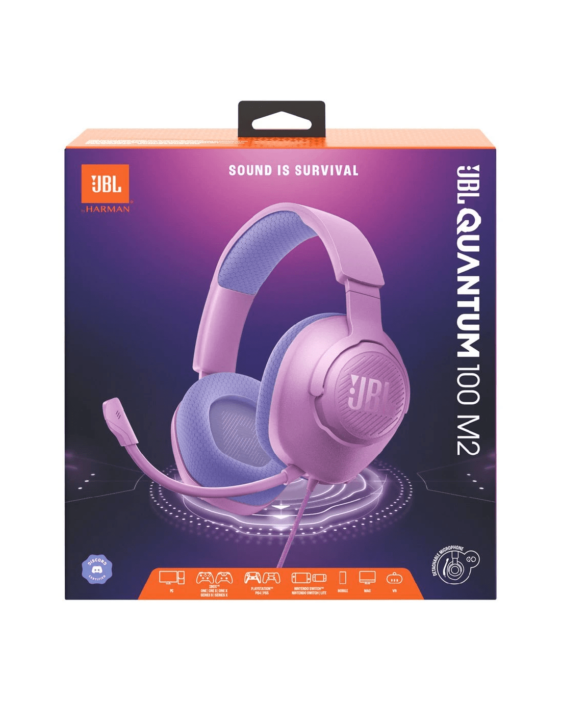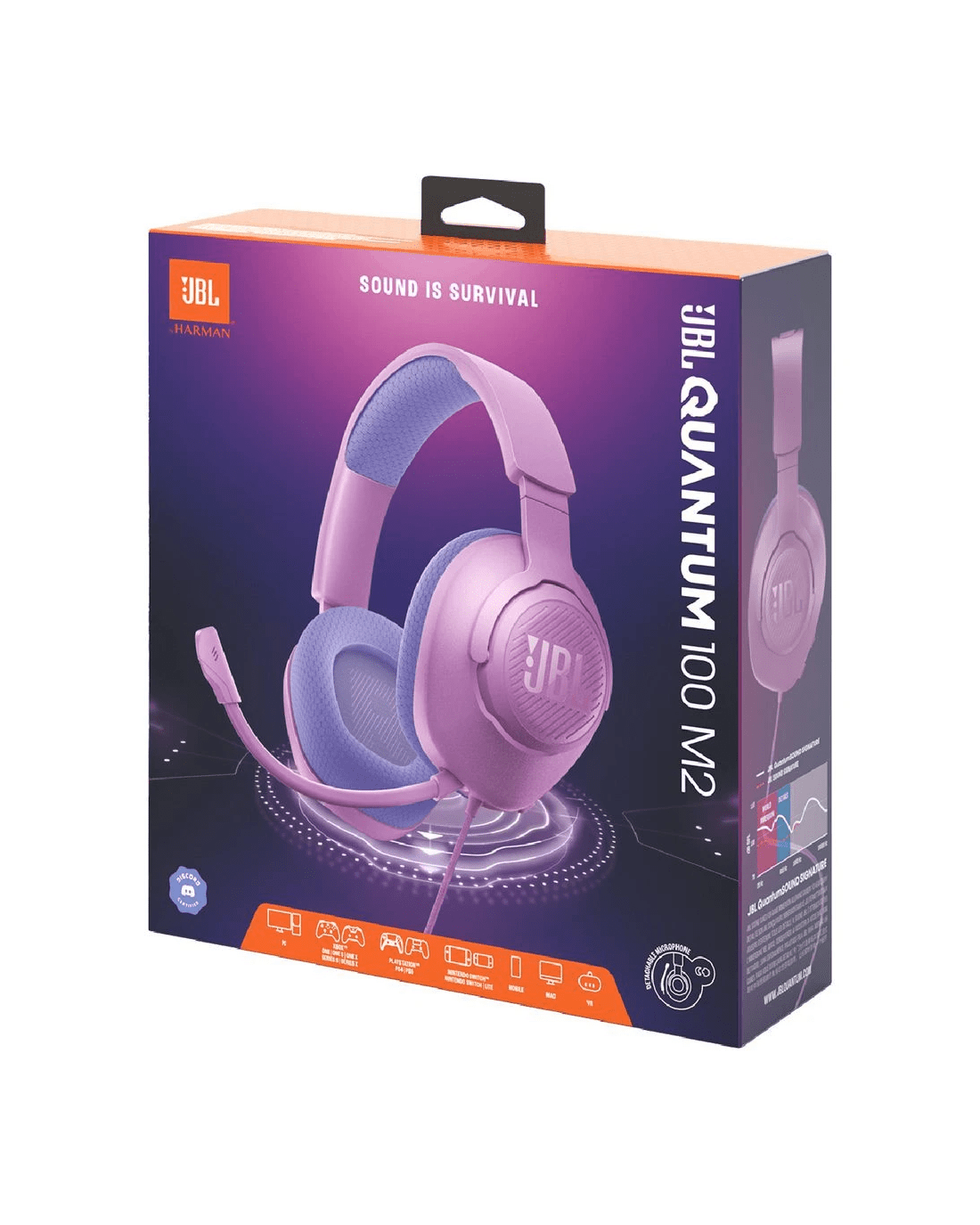 Communicate with your teammates using the JBL Quantum 100 Headset. It has JBL Quantum Sound technology, so you can hear the footsteps of your opponents, and callouts from your squad. It has a detachable directional boom mic so your voice is crisp and clear.