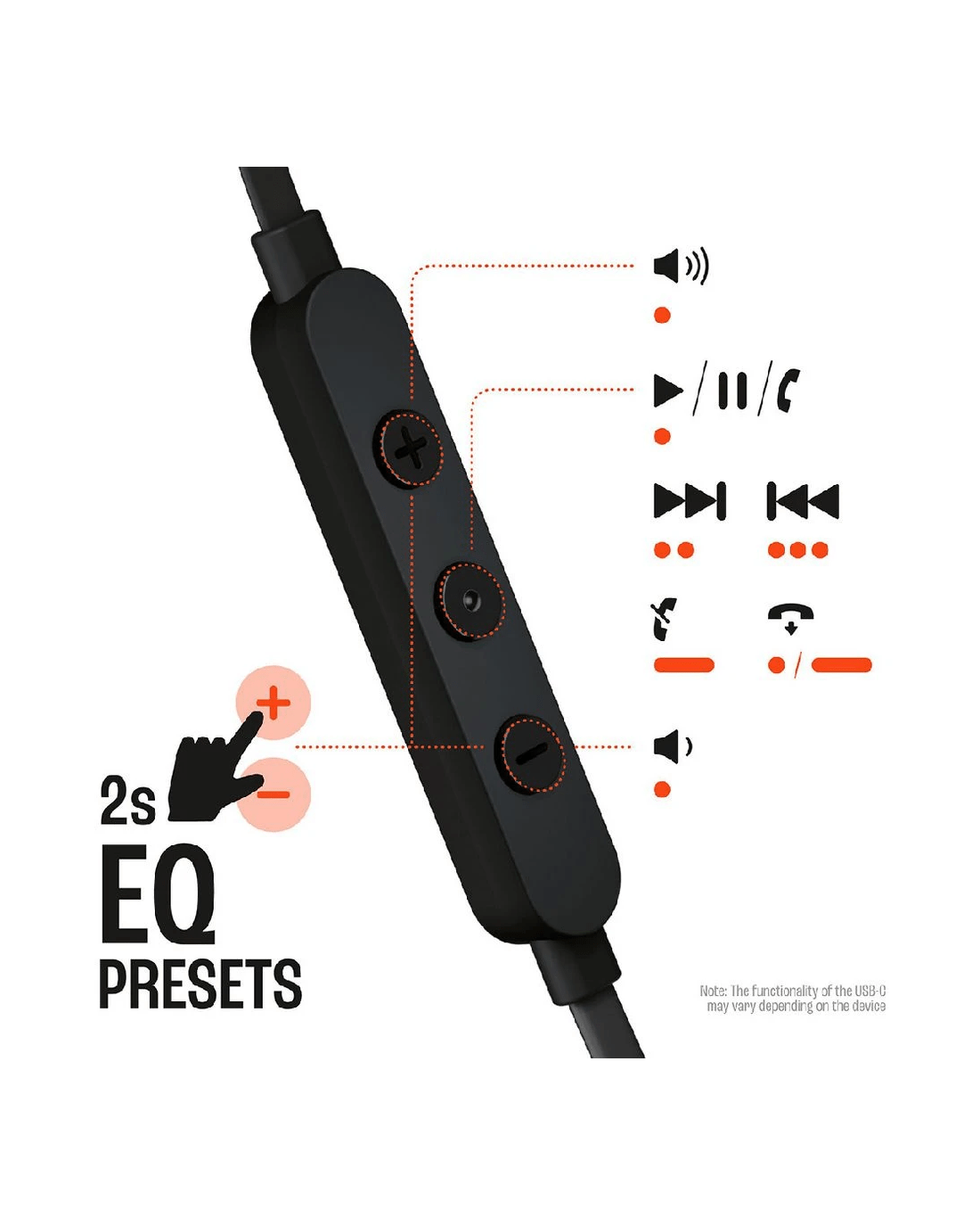 - Select Default, Bass, or Vocal to find the sound that fits your taste via the 3-button remote on the wire.