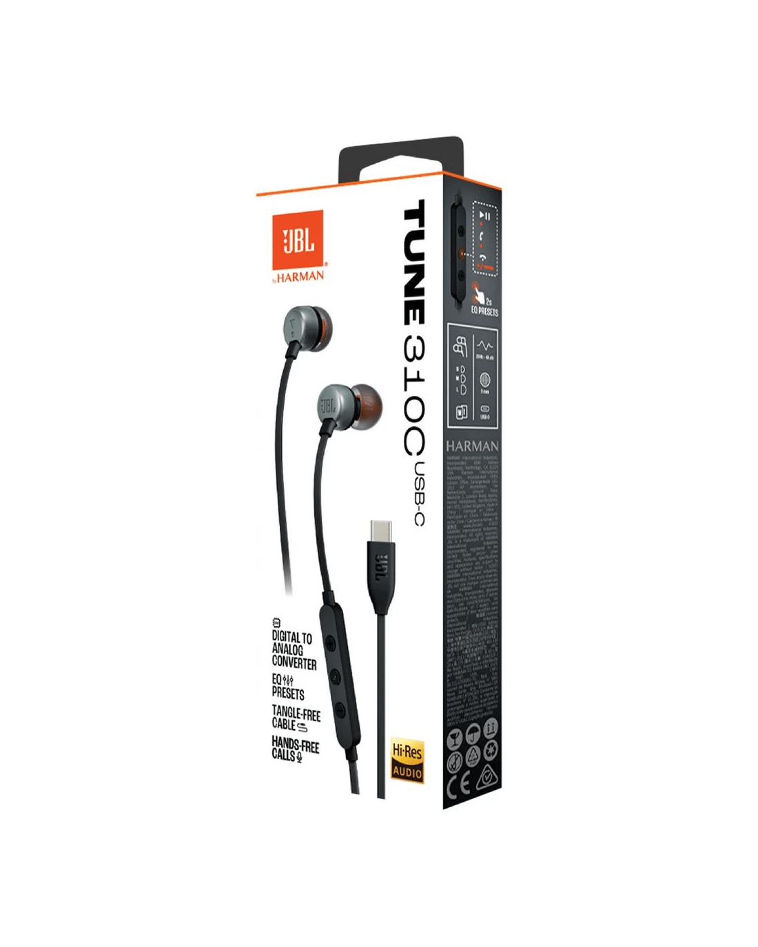 Experience the deep, powerful bass of JBL Pure Bass Sound with the JBL Tune 310C USB-C In-Ear Headphones. Designed for versatility, they offer Hi-Res Audio for crystal-clear sound and USB-C connectivity for wide-ranging device compatibility. Enjoy effortless control with a three-button remote for music playback, volume adjustment, and calls, all through a tangle-free flat cable that ensures durability and convenience on the go