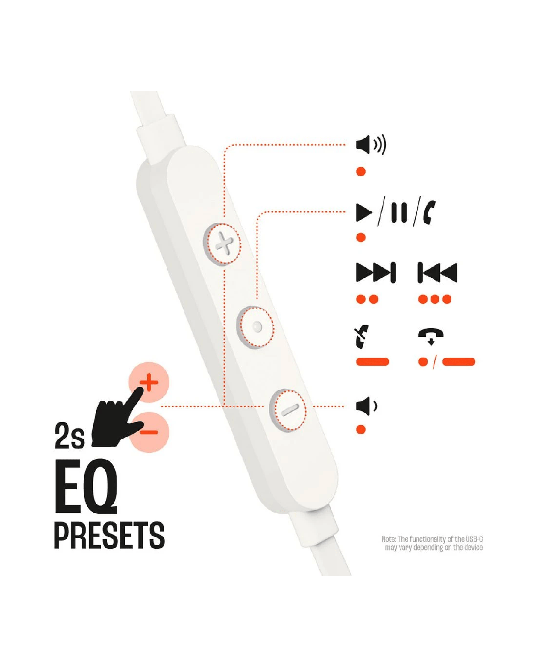 - Select Default, Bass, or Vocal to find the sound that fits your taste via the 3-button remote on the wire.
