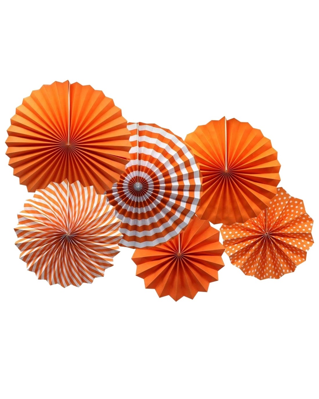 Partyrama Orange Paper Fan Decorations Pack of 6 - Orange