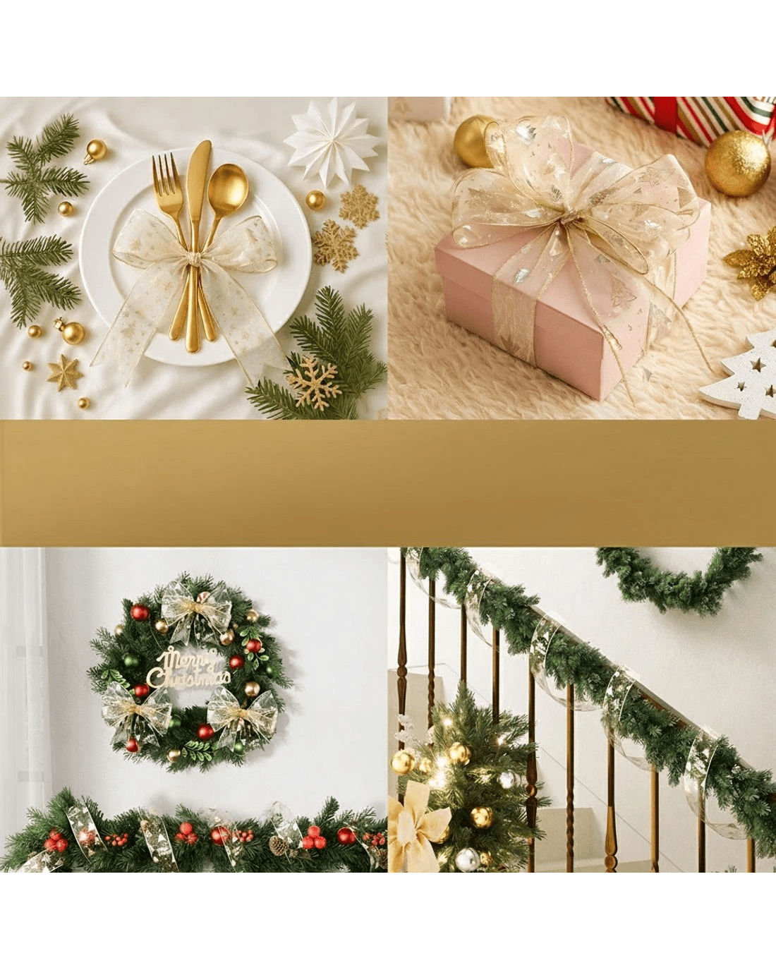 Sold by Aisle SixJingle Jollys 20M Christmas Ribbon Roll Bow Printed Xmas Tree Decor Gift Gold - Gold