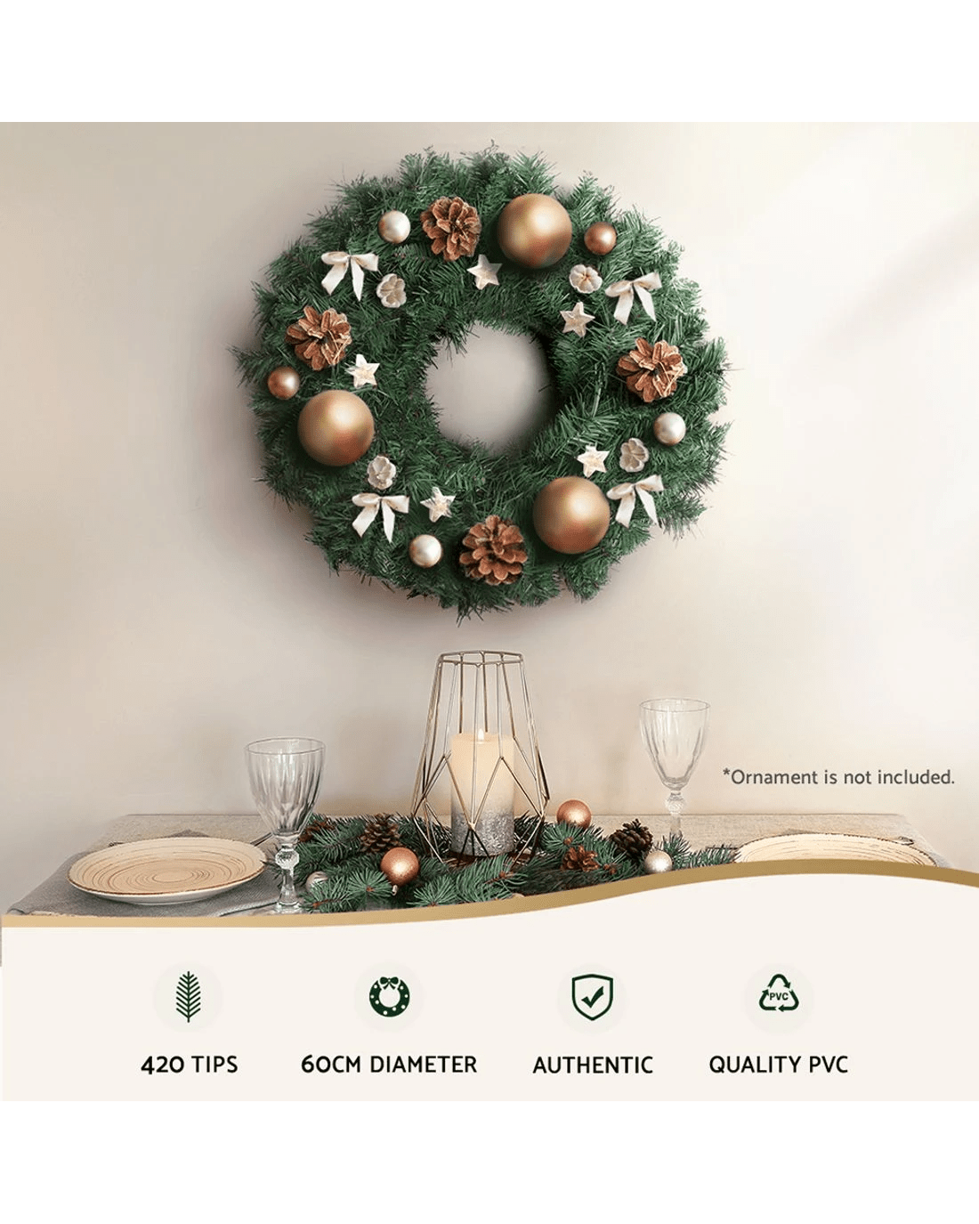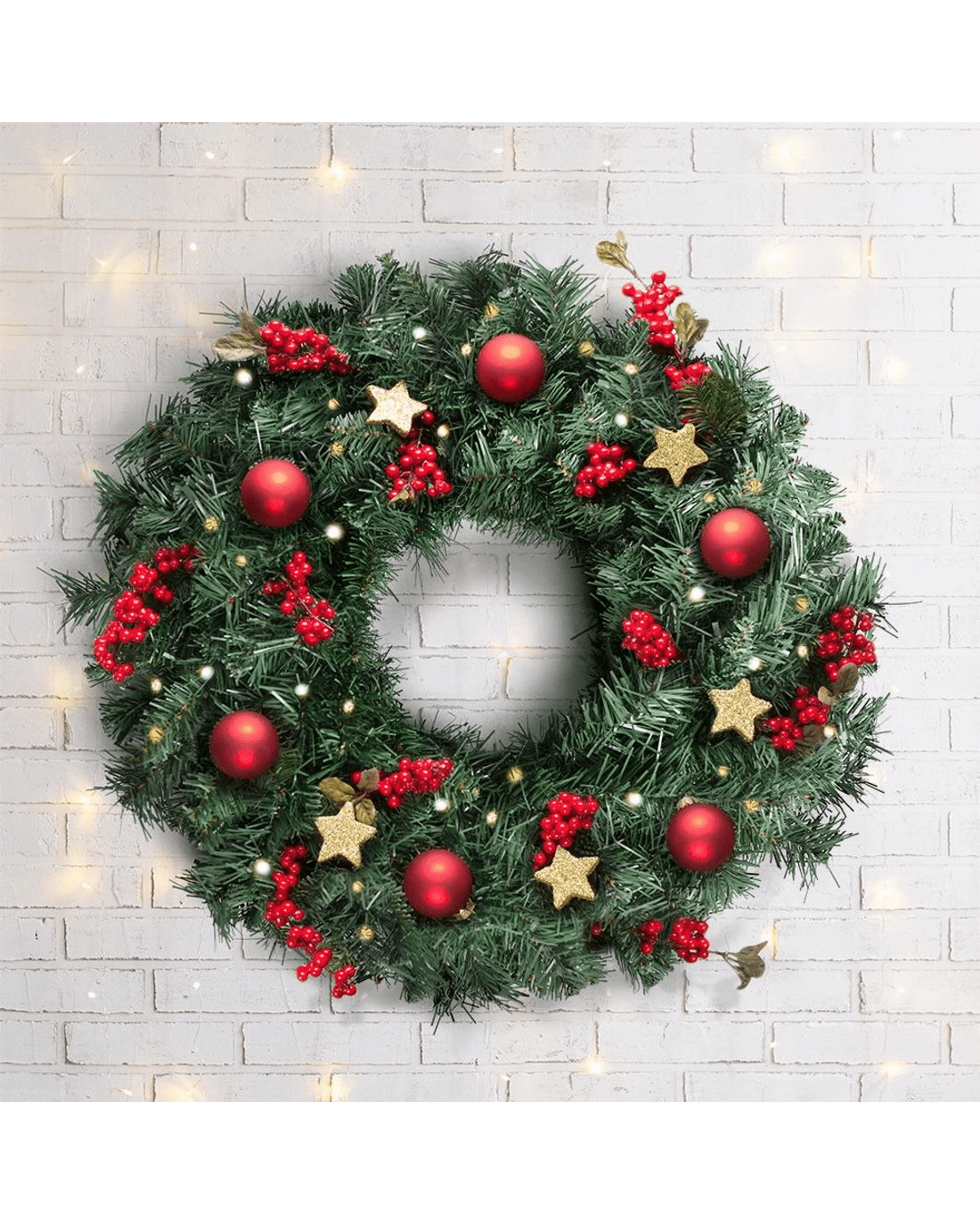 Sold by Aisle SixJingle Jollys 60cm Christmas Wreath Garland Xmas Decorations Wedding Party - Green
