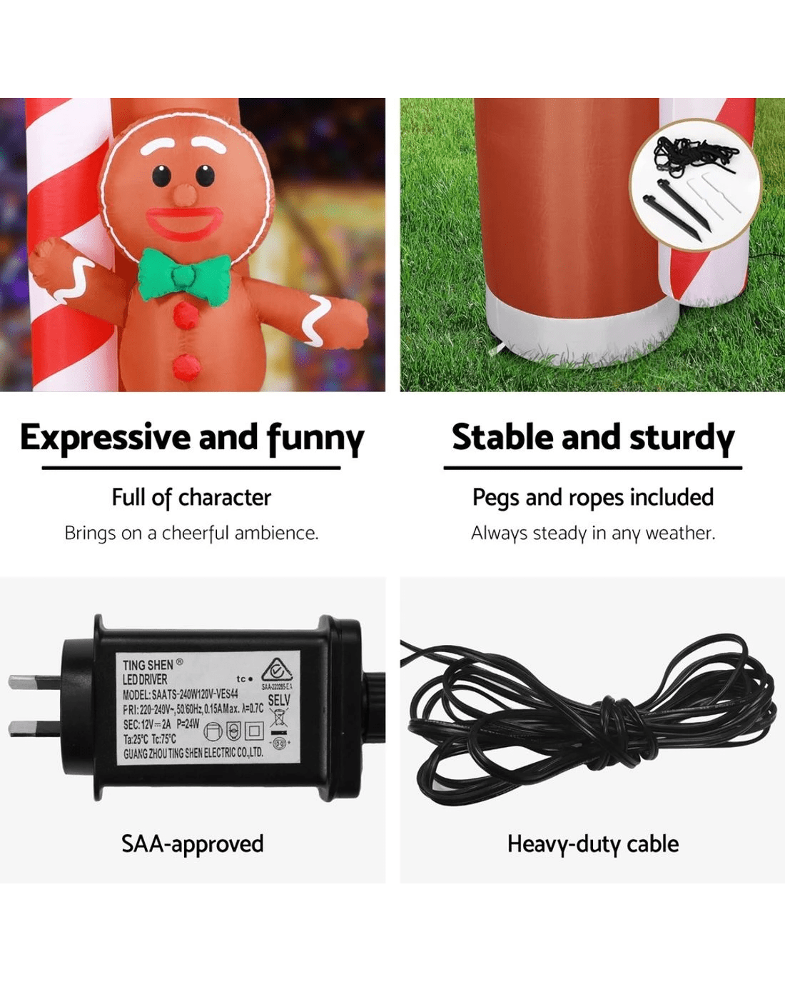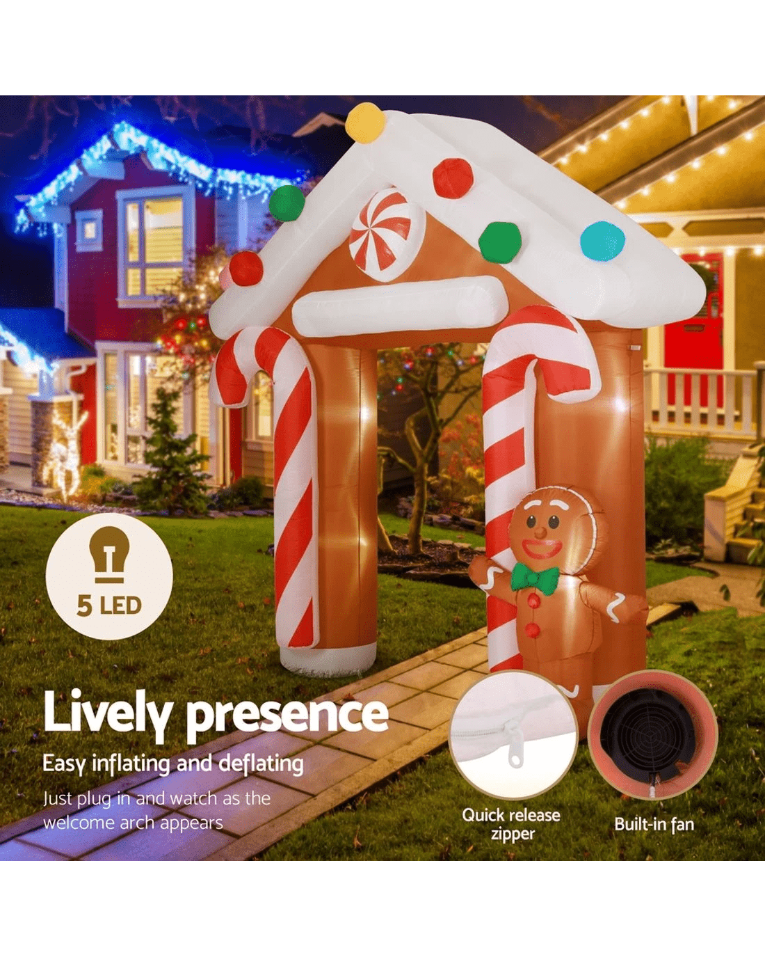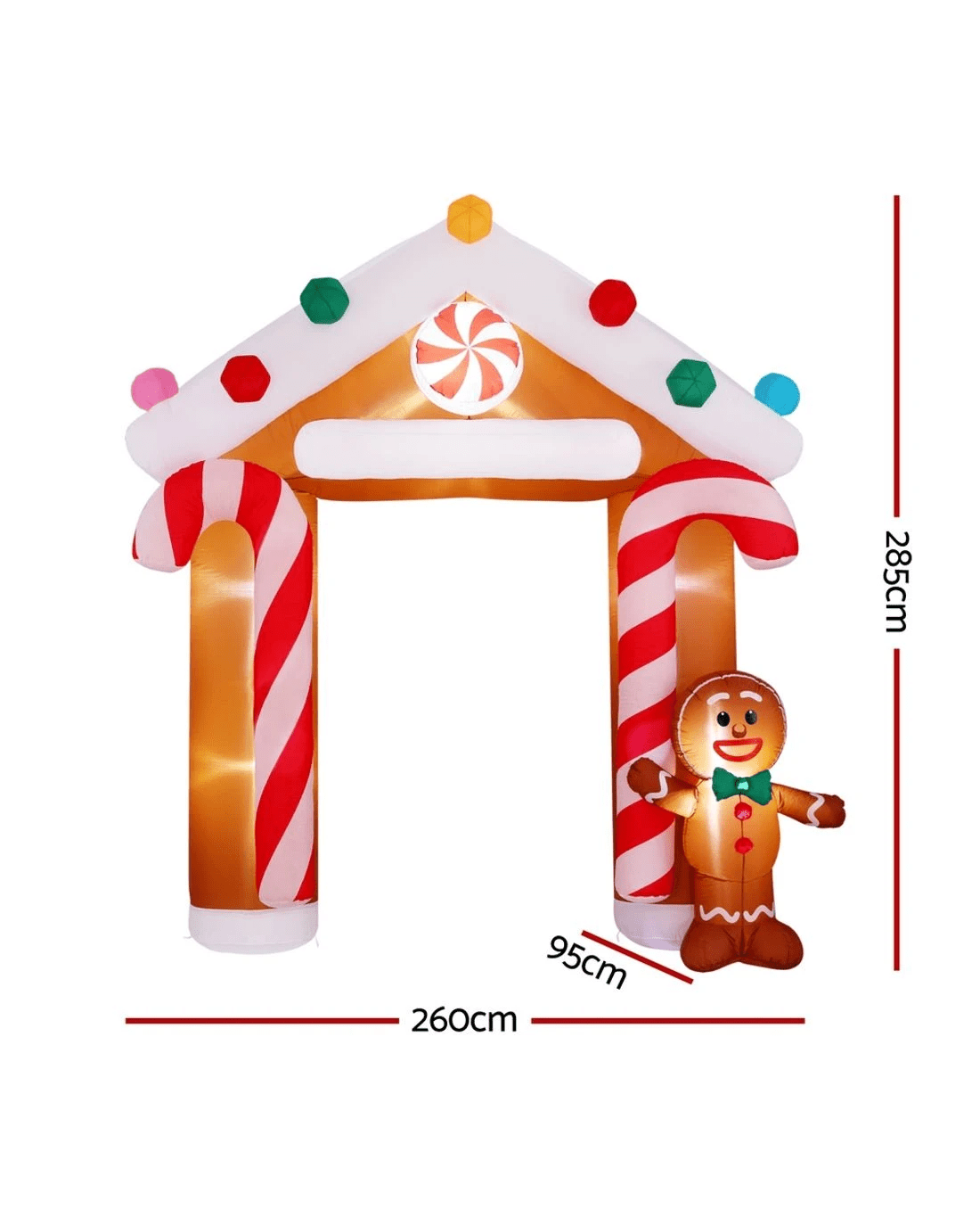 Jingle Jollys Christmas Inflatable Archwary Ginger 2.8M Illuminated - Multi
