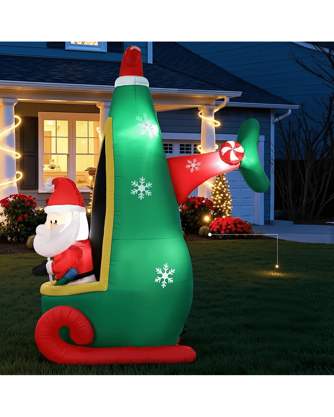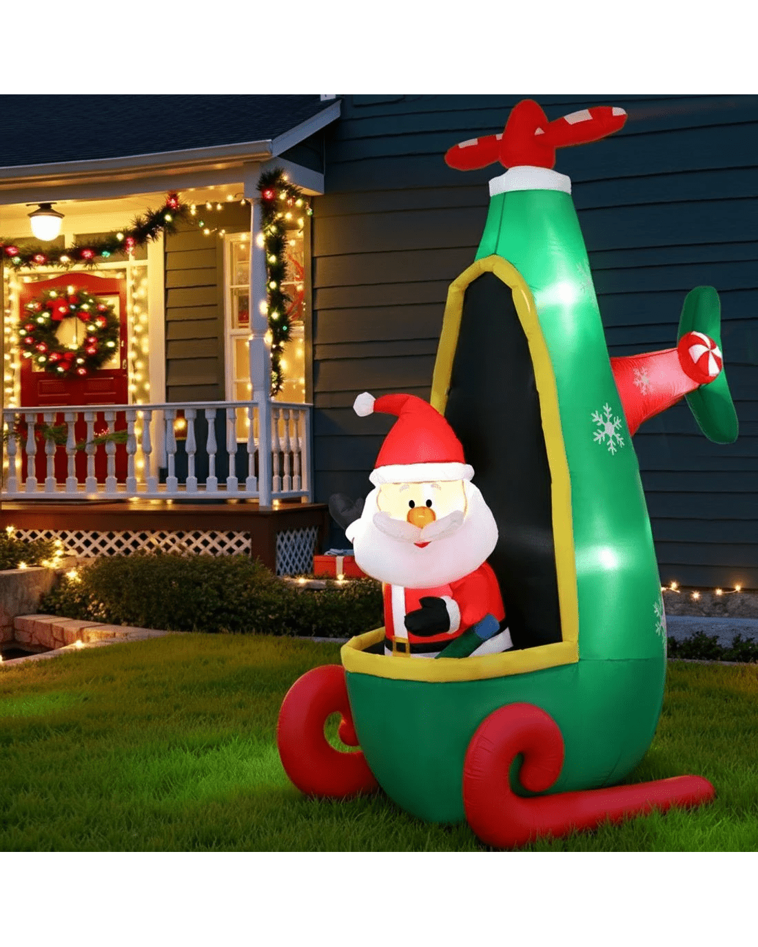Jingle Jollys Christmas Inflatable Santa in Helicopter 2.55M Height LED Illuminated Decorations - Multi
