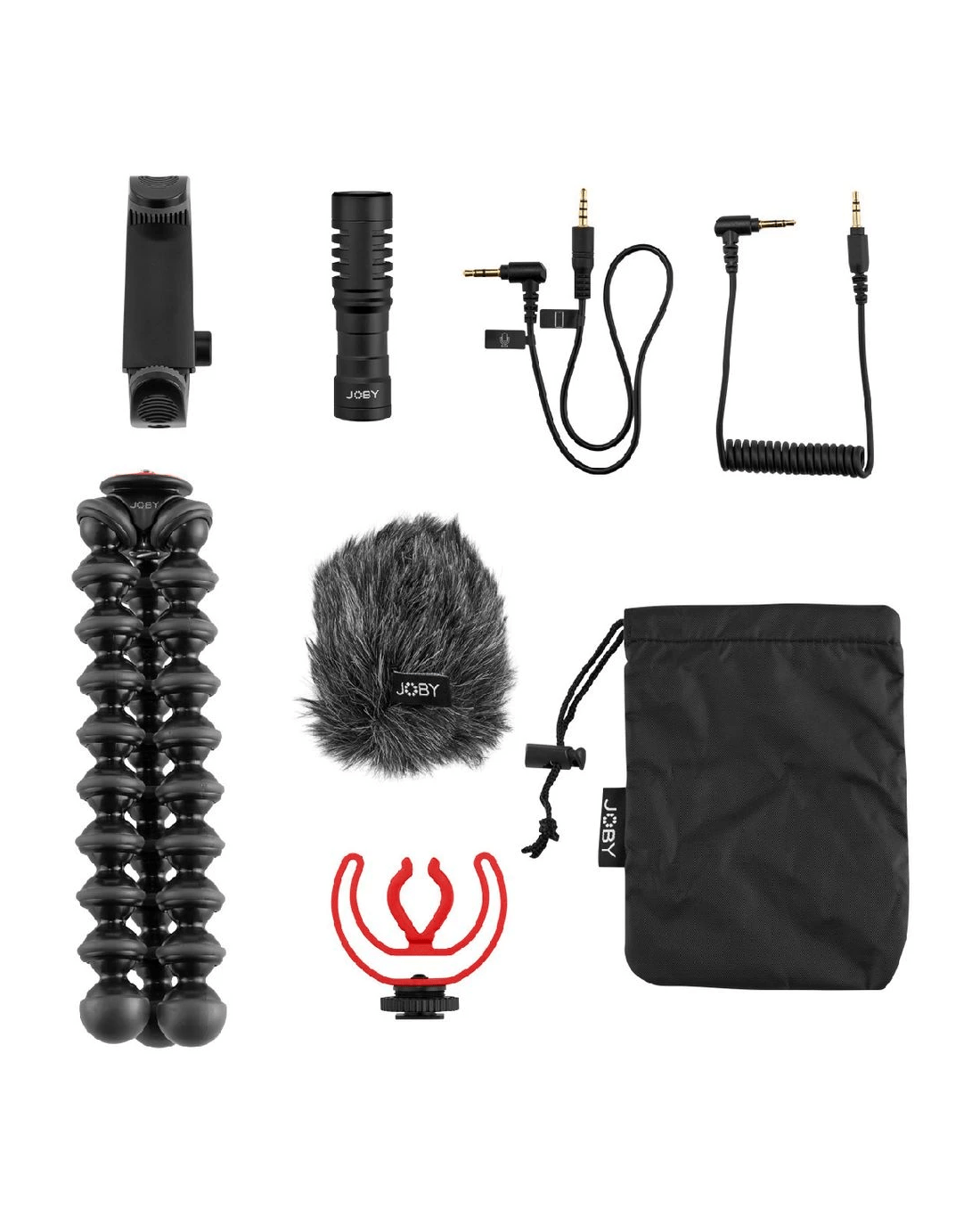 • This kit comes with GorillaPod 1K legs (tripod base), GripTight clamp, Wavo Mobile vlogging microphone and a Rycote Duo-Lyre shock mount, Windjammer wind shield, TRS cable, TRRS cable and a pouch.