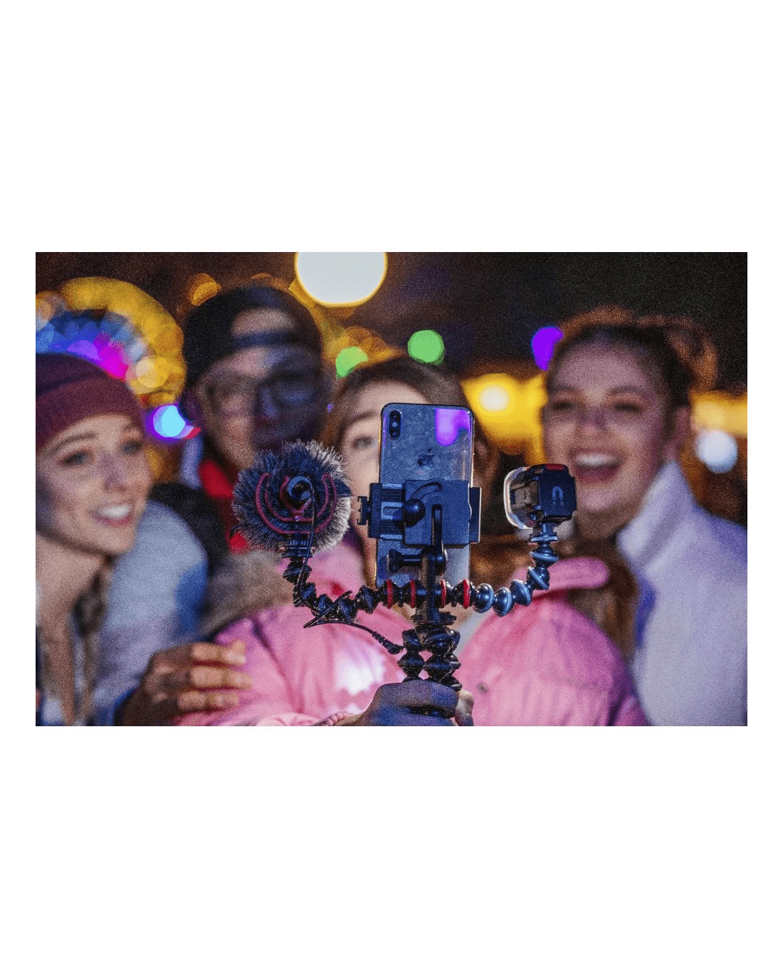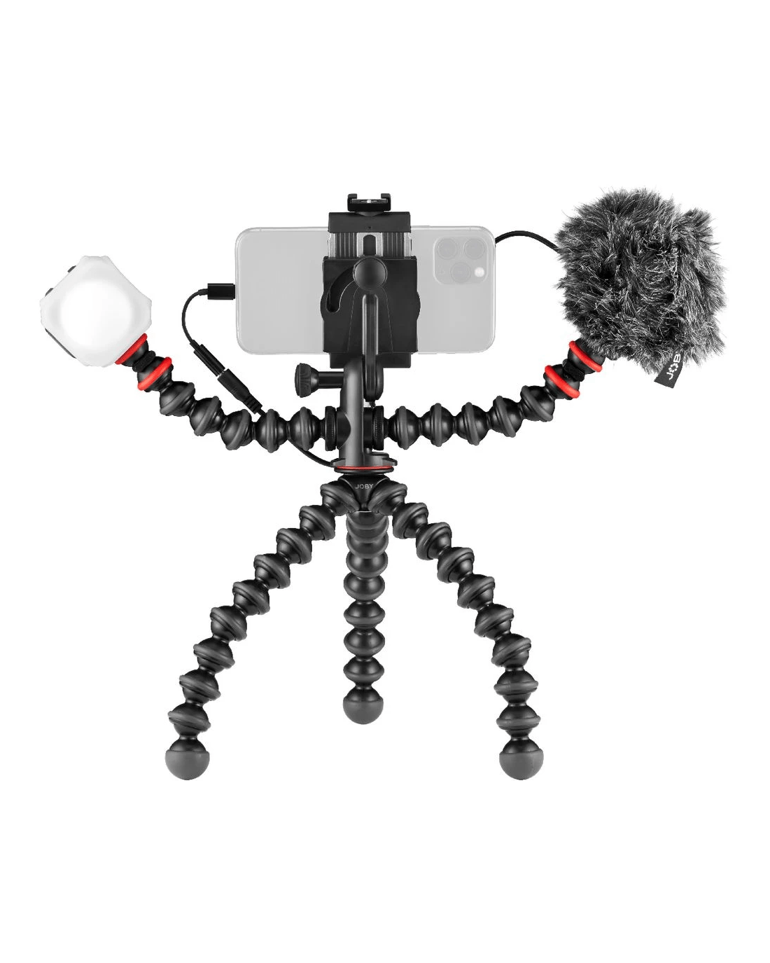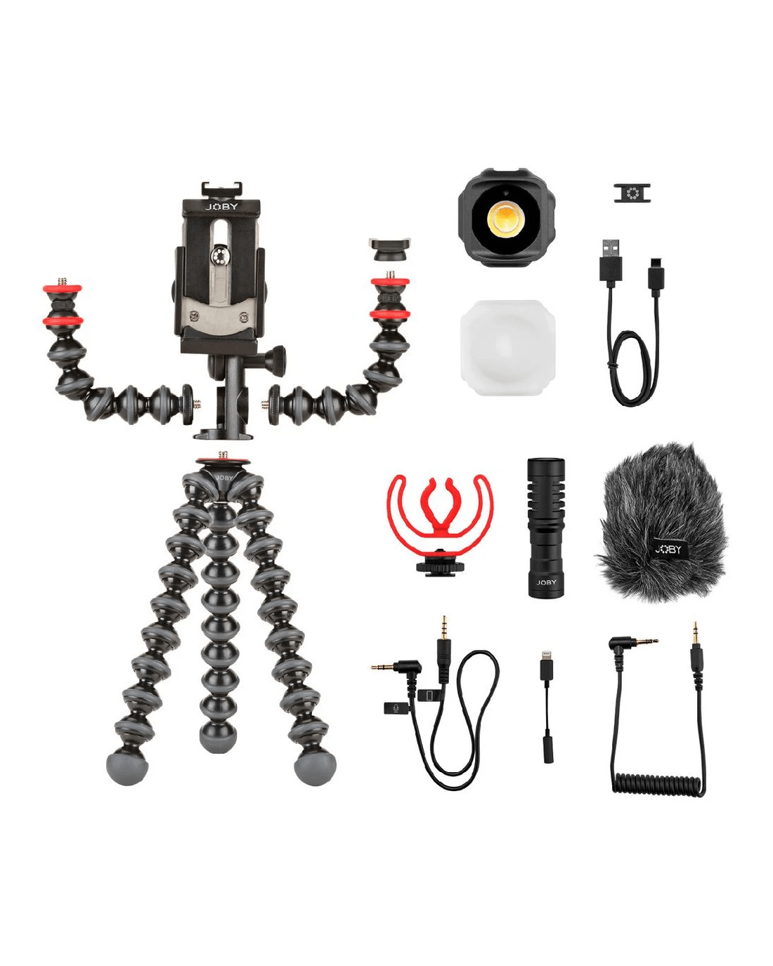 - This kit features the GorillaPod Mobile Rig, Wavo Mobile Mic, and Beamo Mini LED Light for creating your content, with accessories like a shock mount, windshield, TRS cable, TRRS cable, bag, cold shoe adapter, and USB-C cable also being included.