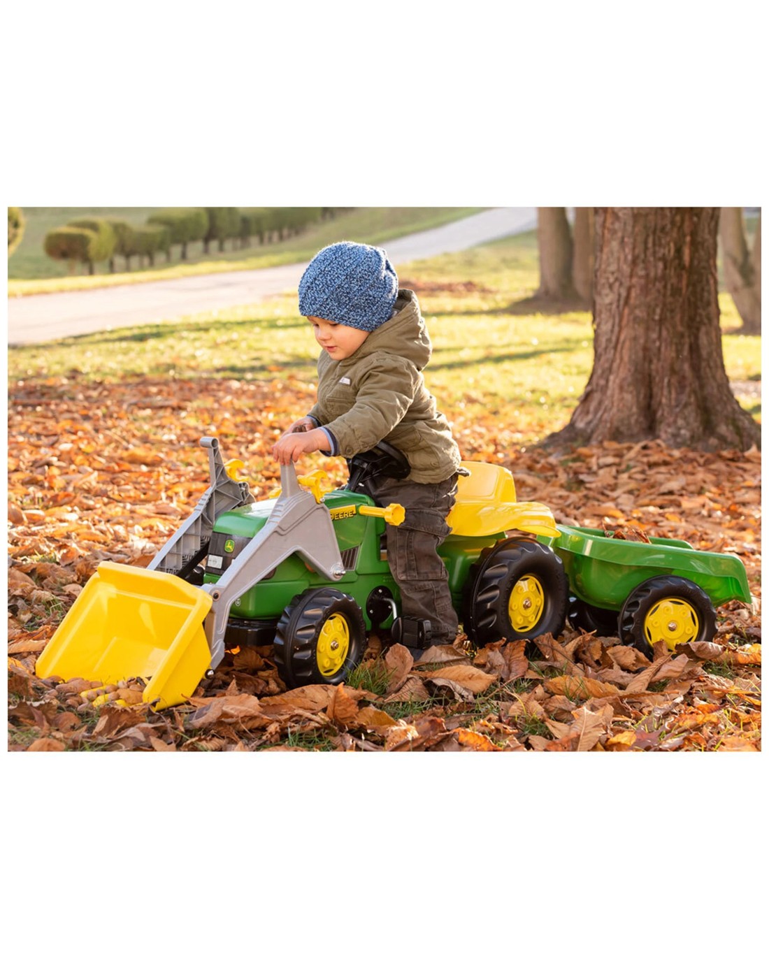 The John Deere 161cm Rolly Classic Pedal Tractor with Front Loader and Trailer is designed for young children to enjoy active outdoor play. Perfect for farmyard adventures or backyard fun, this toy offers a realistic and engaging experience for little farmers.