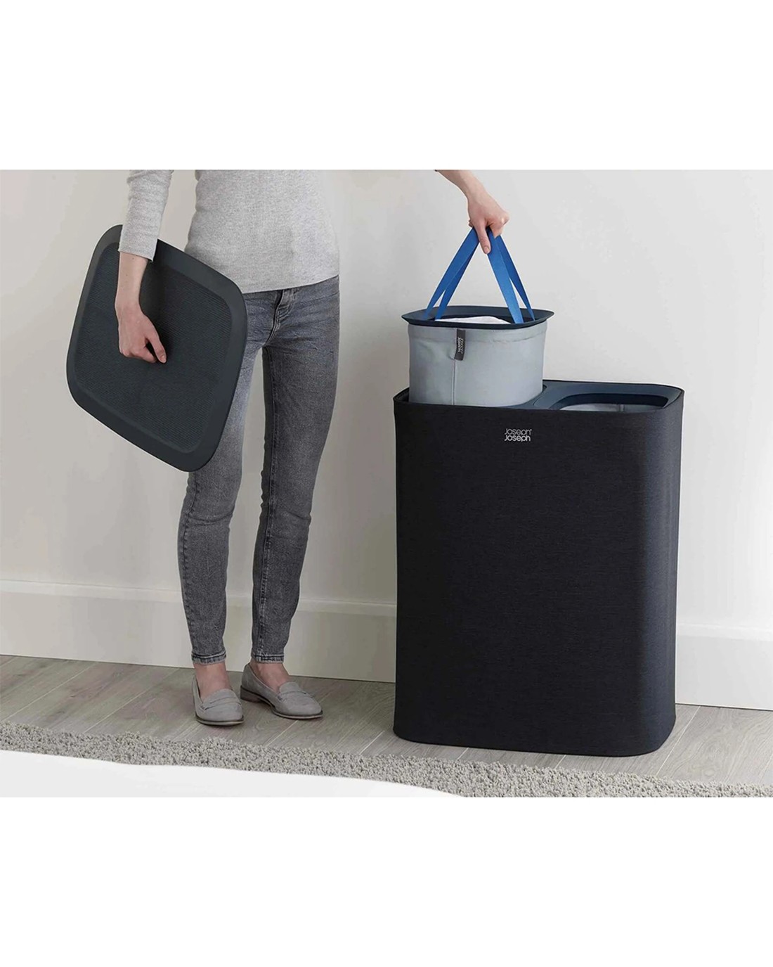 Sold by KG SuperStoreJoseph Joseph 90L Tota Laundry Separation Basket Dual Compartments Tote Bag Carbon - Black