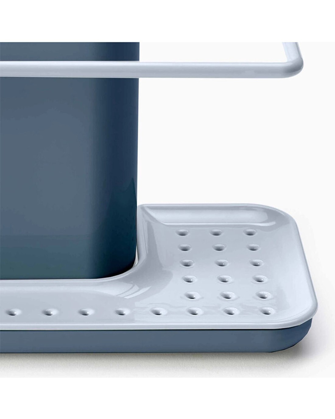 This practical sink caddy features a spacious main compartment for storing a washing-up liquid bottle and a brush. An integrated rail provides hanging space for damp dishcloths, while a large draining plate within the base offers a dedicated area for wet sponges and scourers. The concealed reservoir beneath the unit collects drained water, preventing mess and maintaining a tidy sink area. The entire unit can be easily dismantled for thorough cleaning, ensuring hygiene and longevity.