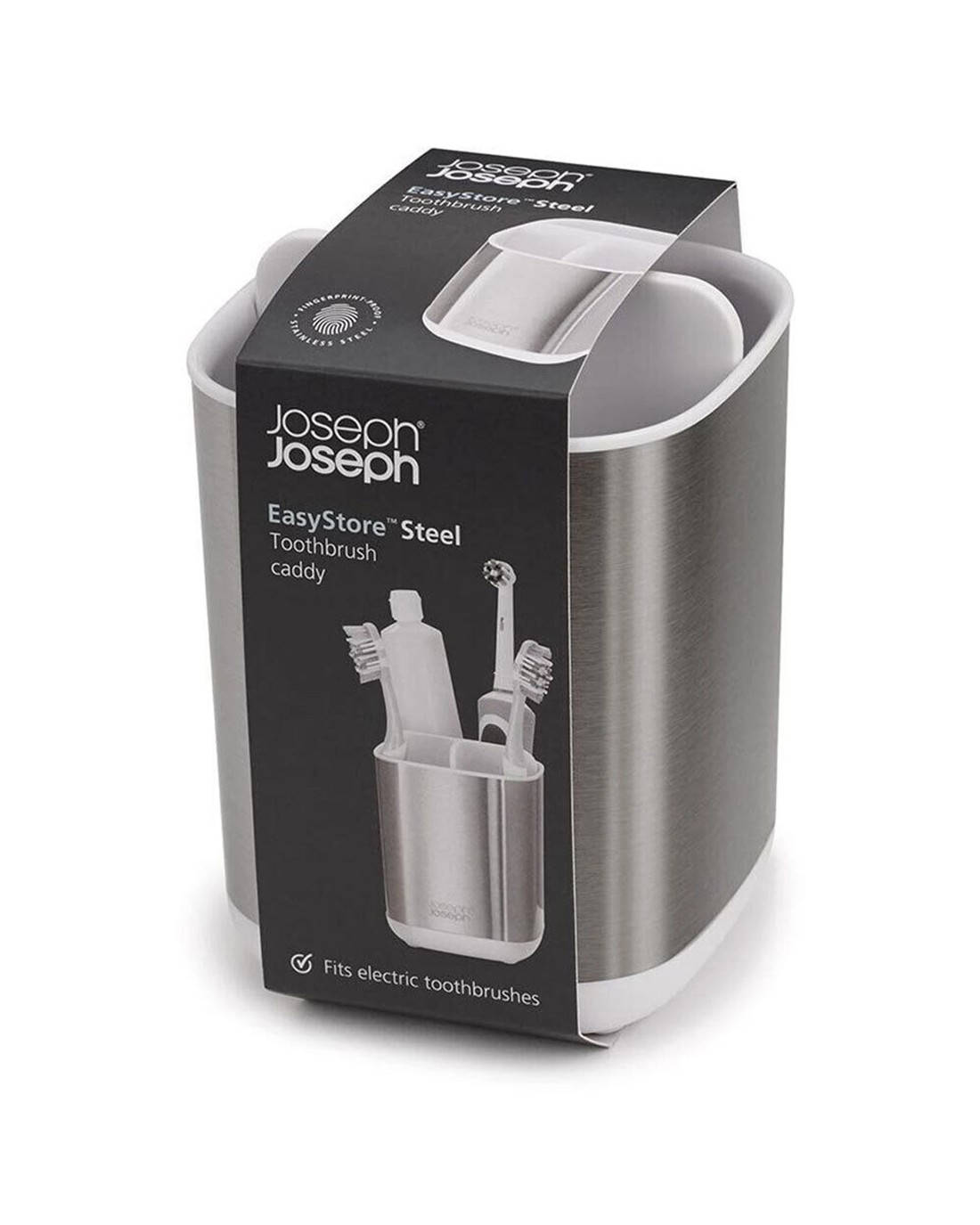 The Joseph Joseph EasyStore Steel Toothbrush Caddy Twin Pack is designed for organising your oral care items efficiently. This set provides a neat and hygienic solution for storing toothbrushes, toothpaste, and other dental essentials in your bathroom.