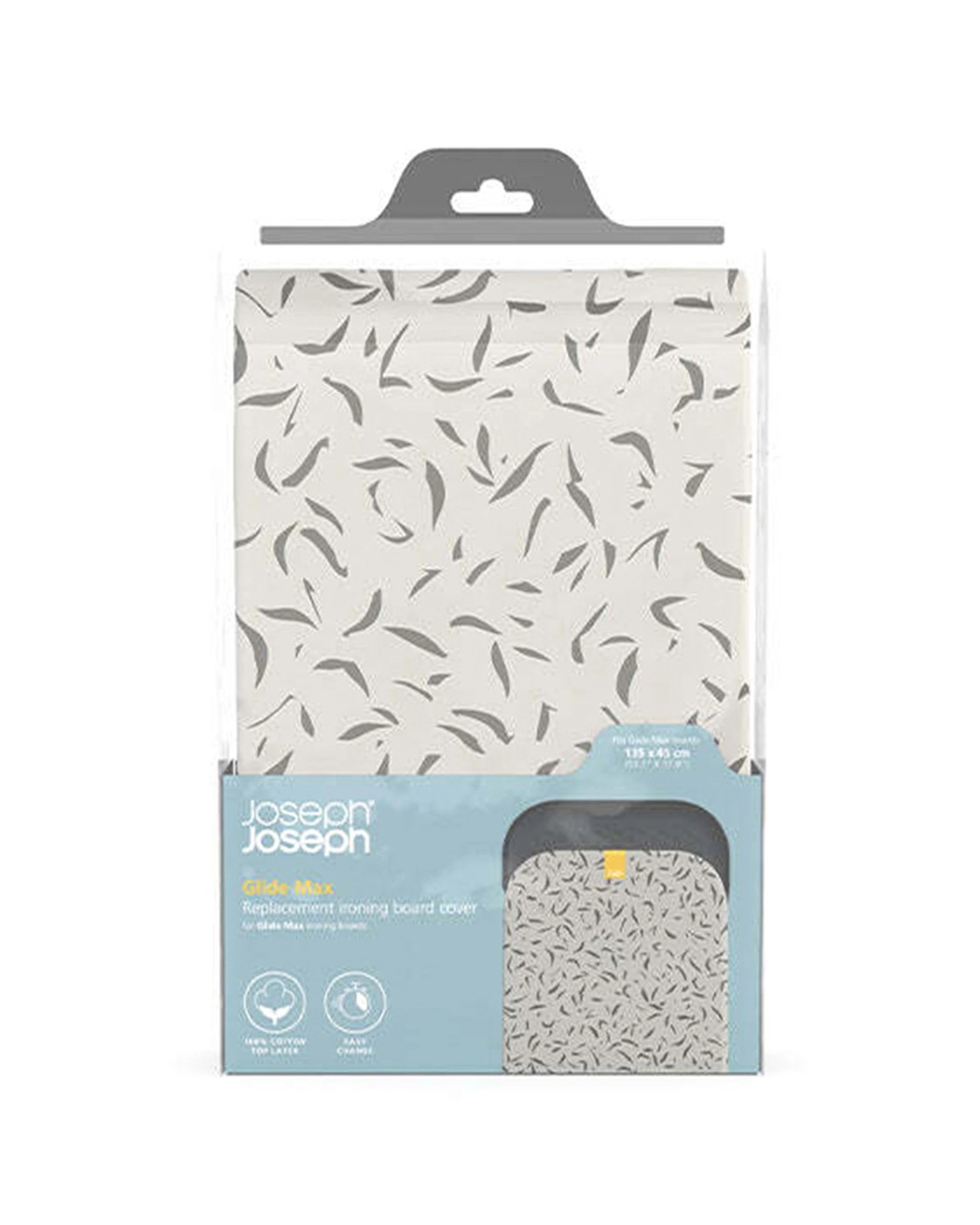 This replacement cover is specifically suitable for Joseph Joseph Glide Max ironing boards measuring 135 x 45 cm. Its adjustable toggle ensures a secure, tight fit, preventing slipping during use. The easy-to-change design makes maintenance simple and hassle-free.