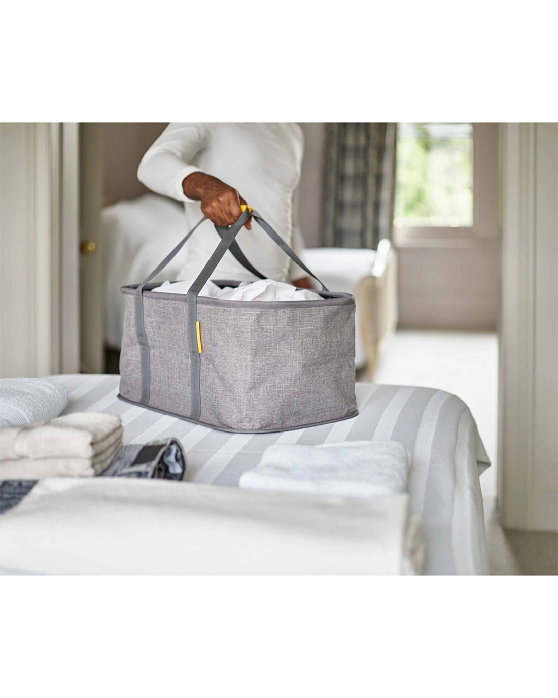 The Joseph Joseph Hold-All Collapsible Laundry Basket is designed for convenient laundry storage and transport. Made from durable polyester fabric, it comfortably holds a full load of laundry and features strong woven handles for easy carrying around your home or outside to the washing line.