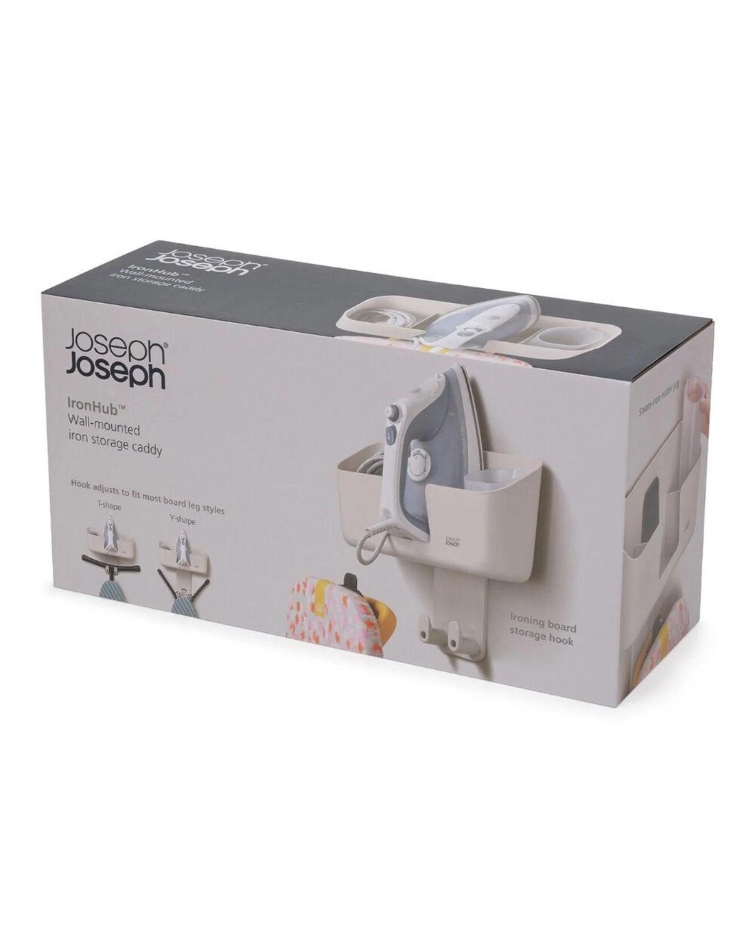 • Features an ironing board hanging hook for the majority of models: T-shaped, Y-shaped and Joseph Joseph Glide ironing boards.