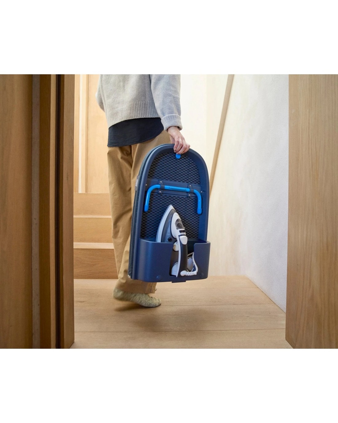 Integrated Storage and Organisation: Features a built-in iron compartment and hanging hook for easy storage and quick access.