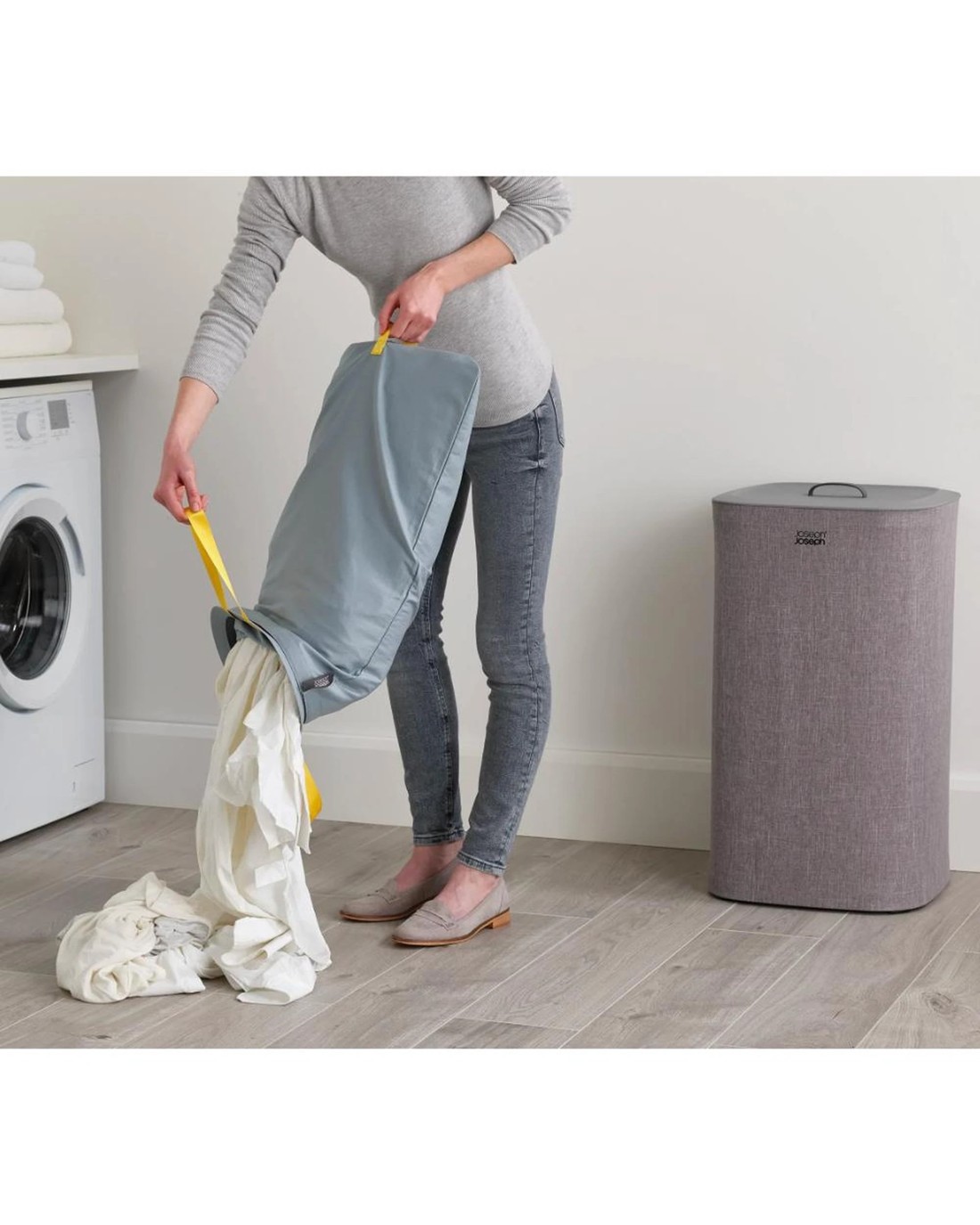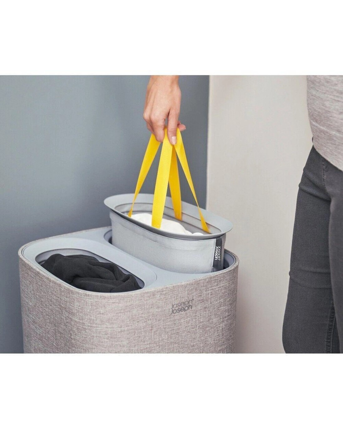 Assist in your daily laundry tasks! Be it for the kitchen, bathroom, or utility room, Joseph Joseph applies the same inventive thinking to everything they do. Their mission is to create desirable products that enhance everyday life and that stay true to their philosophy of creating Brilliantly Useful Designs. Make wash day less of a chore by separating your light and dark/colored fabrics as you go with the dual compartments of this stylish laundry basket.