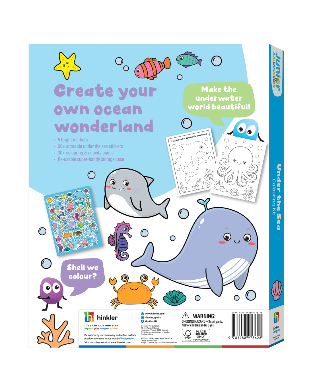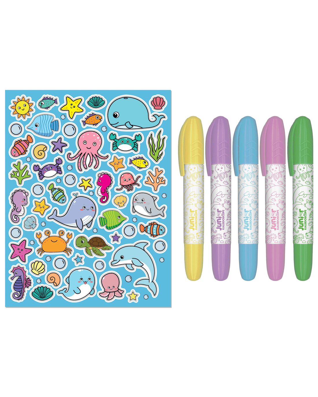 • Includes 50+ adorable under the sea stickers, 30+ colouring and activity pages, re-usable super-handy storage case and 5 bright markers