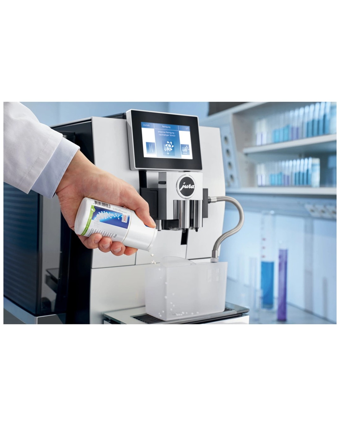 There is a long history of pronounced awareness of environmental issues and sustainable use of resources and energy at JURA. This explains why JURA's original milk system cleaner contains no phosphates. The optimised formula guarantees TÜV-certified hygiene for your milk system while protecting the environment at the same time.