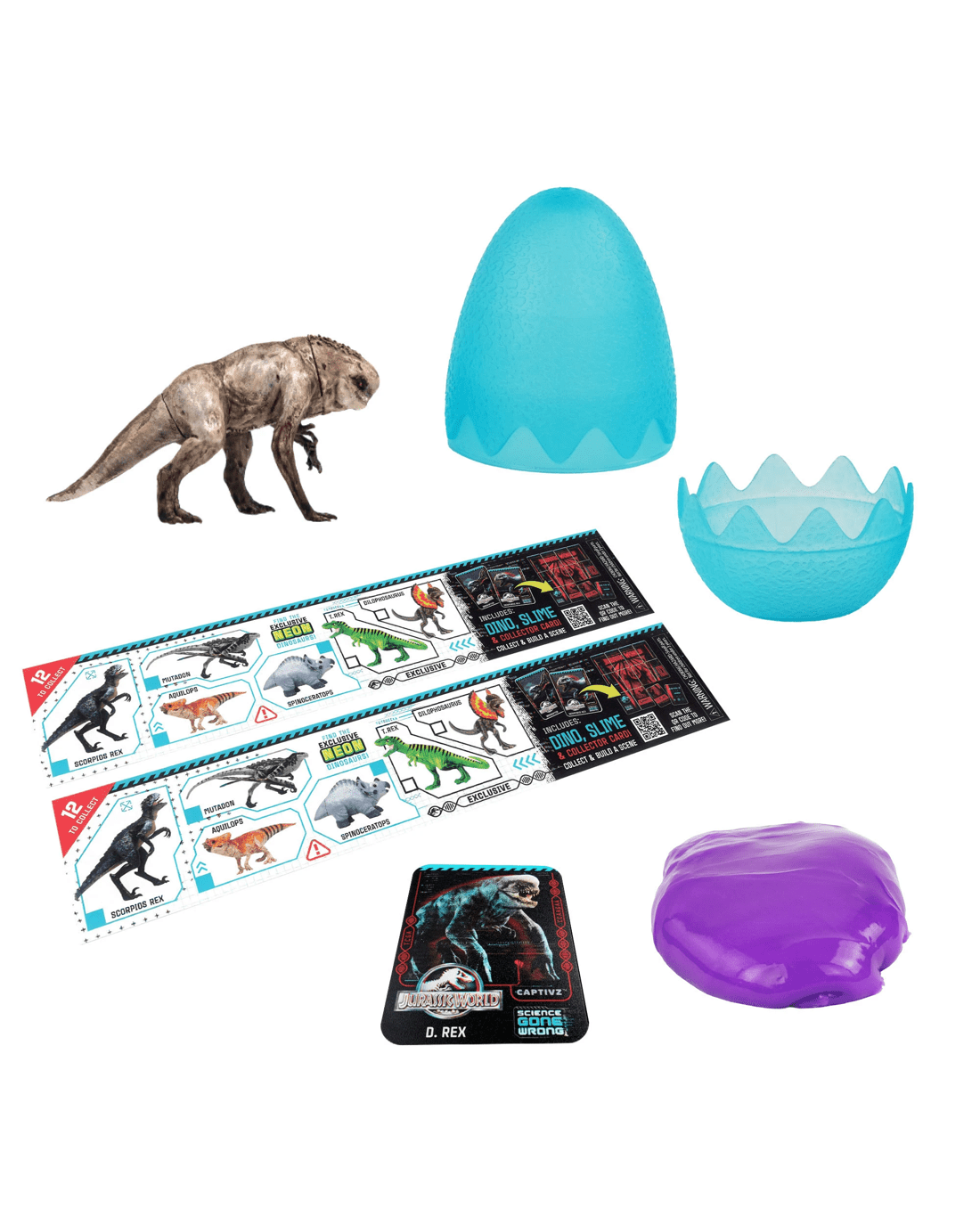 - Crack open the chaos with the Jurassic World CAPTIVZ Science Gone Wrong Slime Egg, the ultimate slime surprise toy for dinosaur fans! Hidden inside each egg is a CAPTIVZ Pop N Lock Dinosaur, oozy stretchable slime, a collector card and a collector guide to track every dino you discover in this range