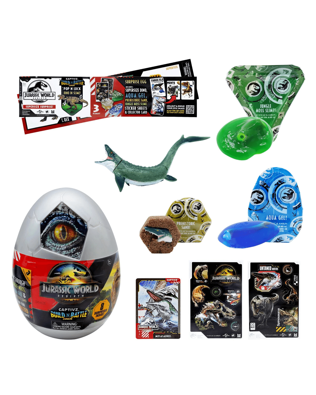 - Each Surprise Egg contains 1 x Supersized Captivz Pop N Lock Dinosaur 1 x Exclusive Collector Card, 1 x Sticker Sheet, 1 x Collector Guide and 3 x Compounds