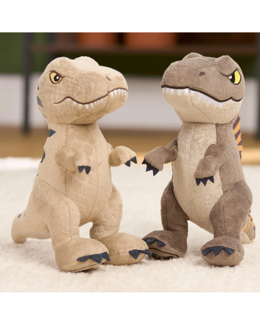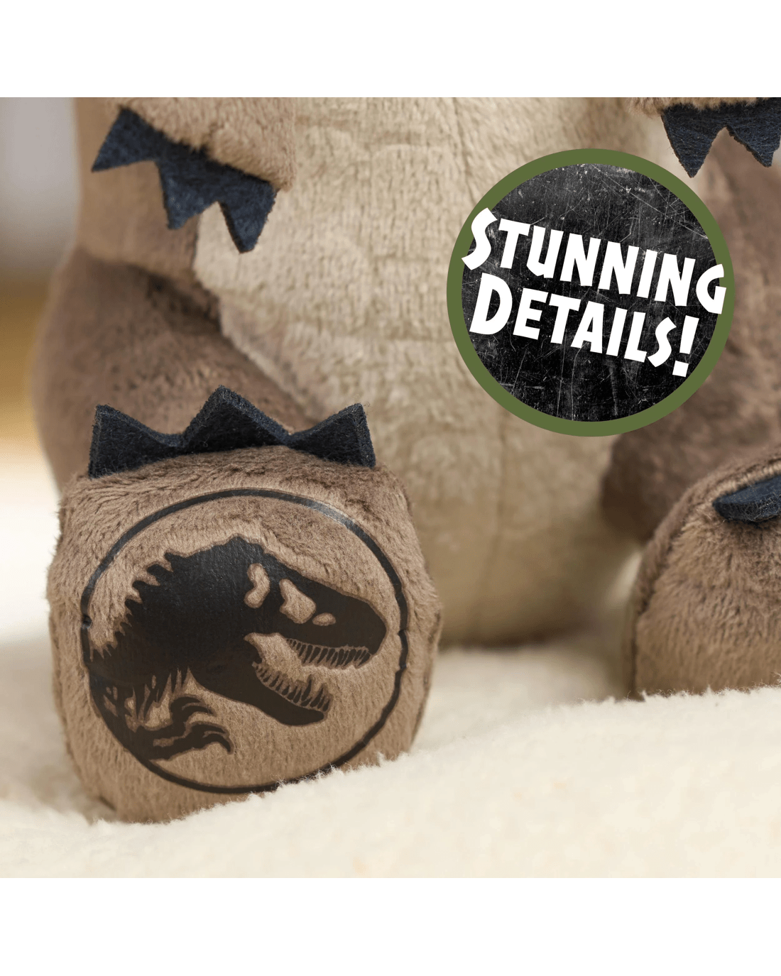- Dino Details: Fearsome, mighty, and massive, Tyrannosaurus Rex is a force to be reckoned with. This kids’ collectible plush toy features colours and characteristics inspired by the legendary dinosaur in the Jurassic World films.