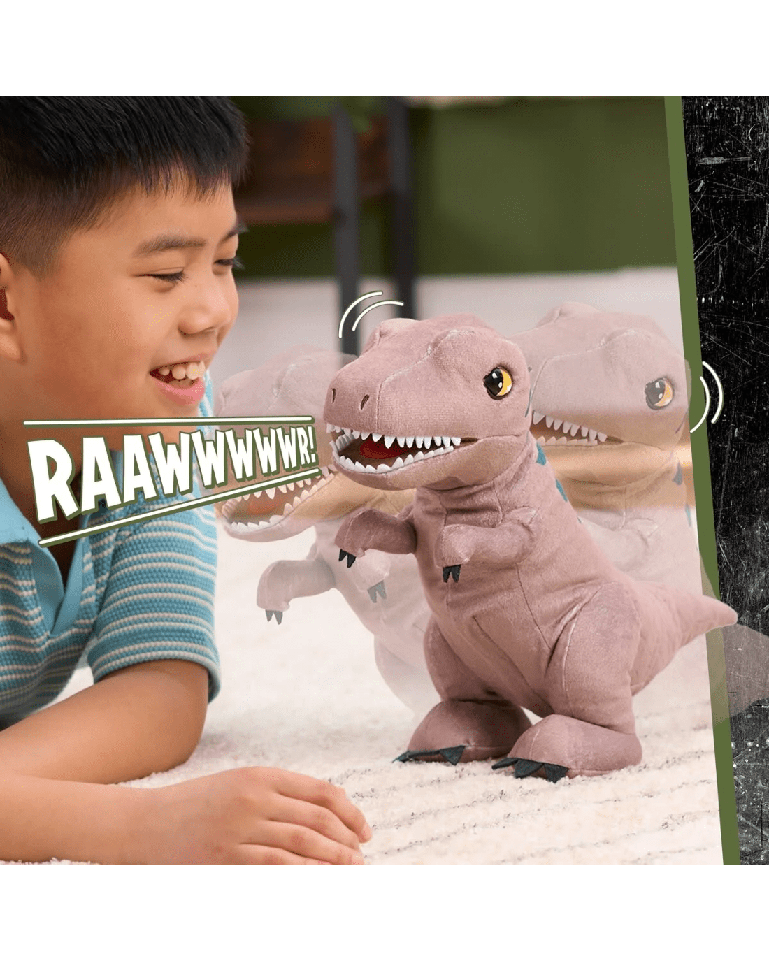 - Jurassic World thrills: The Jurassic World Roaring T. Rex dinosaur plush toy brings the excitement of Jurassic World Rebirth to life with roaring sound effects, lifelike movements and fierce details
