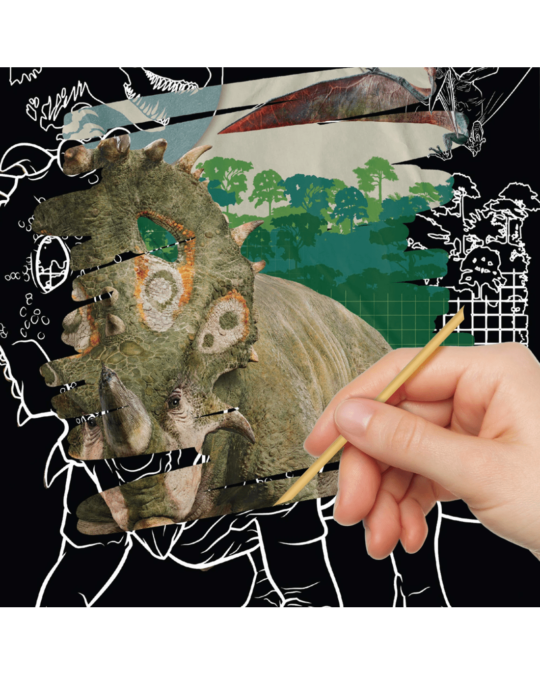 • Scratch and create your own roar-some dinosaur art!