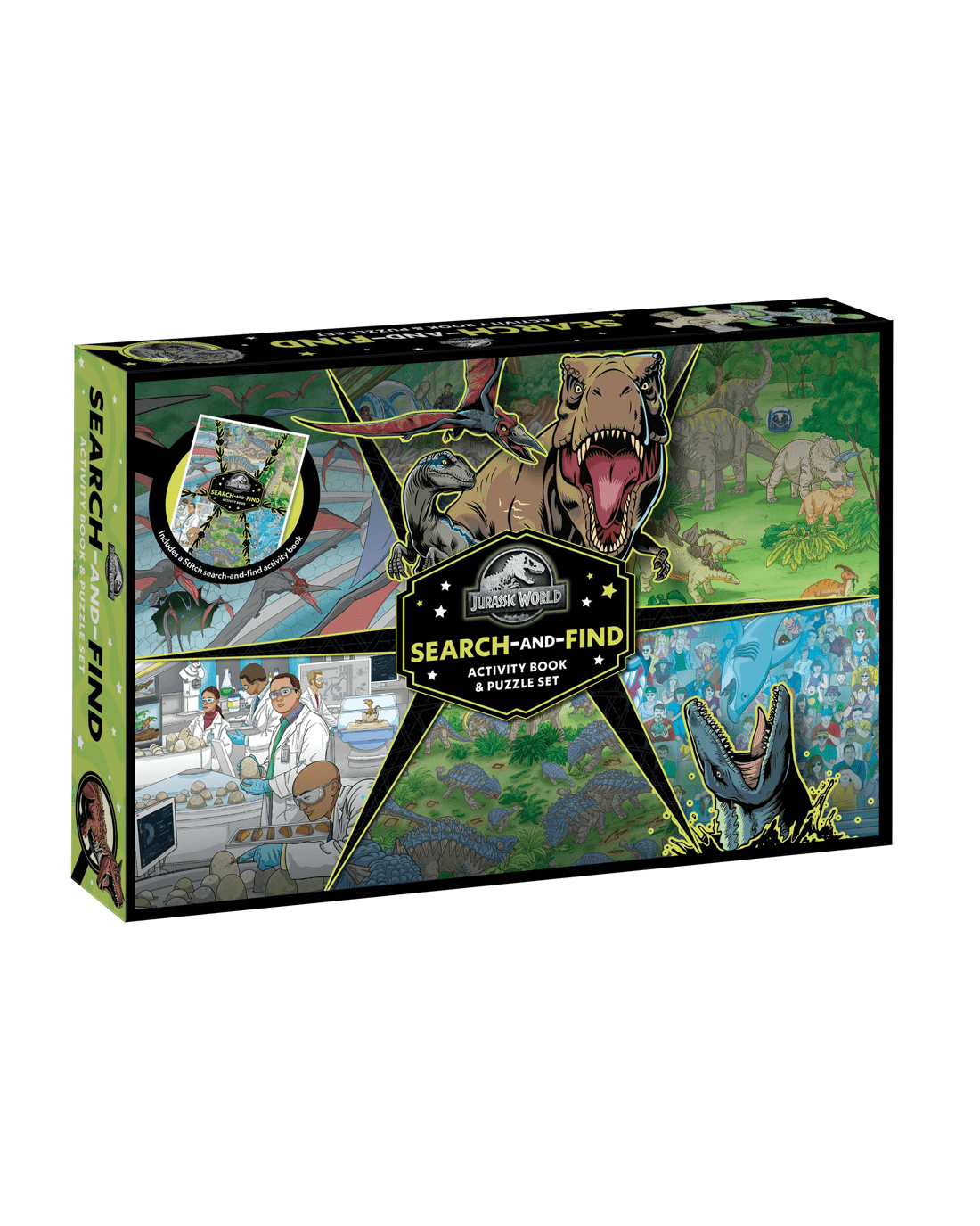 Roar into an epic adventure through Jurassic World as you go dino spotting! From spotting Apatosaurus to a T-rex escaping the enclosure, hop in and explore this search-and-find activity book and puzzle set!