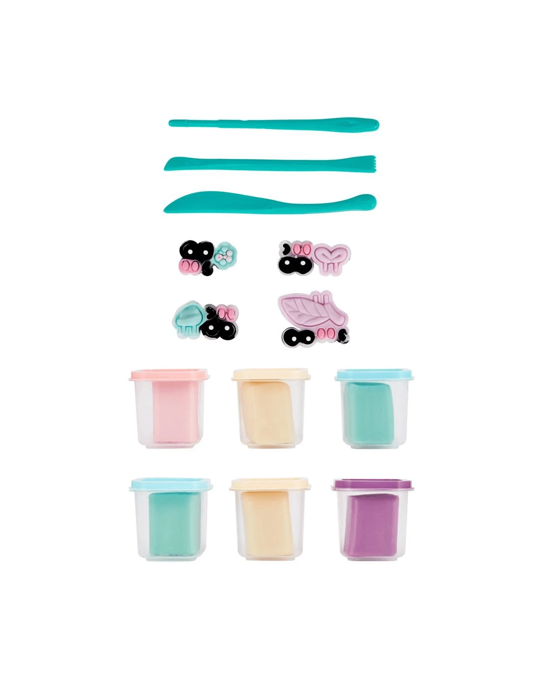 The tactile modelling play set contains everything you need to shape up to four adorable character creations. Each kit includes six pots of pastel-coloured scented rice dough, three tools, four sheets of press-on accessory parts and step-by-step to scale instructions - everything kids need for hands-on, screen-free fun.
