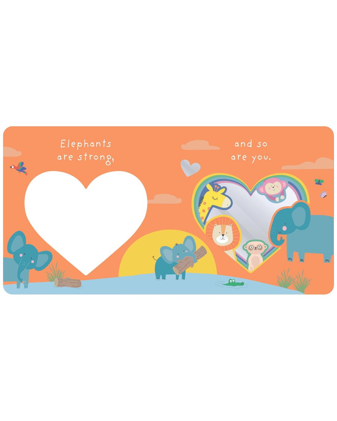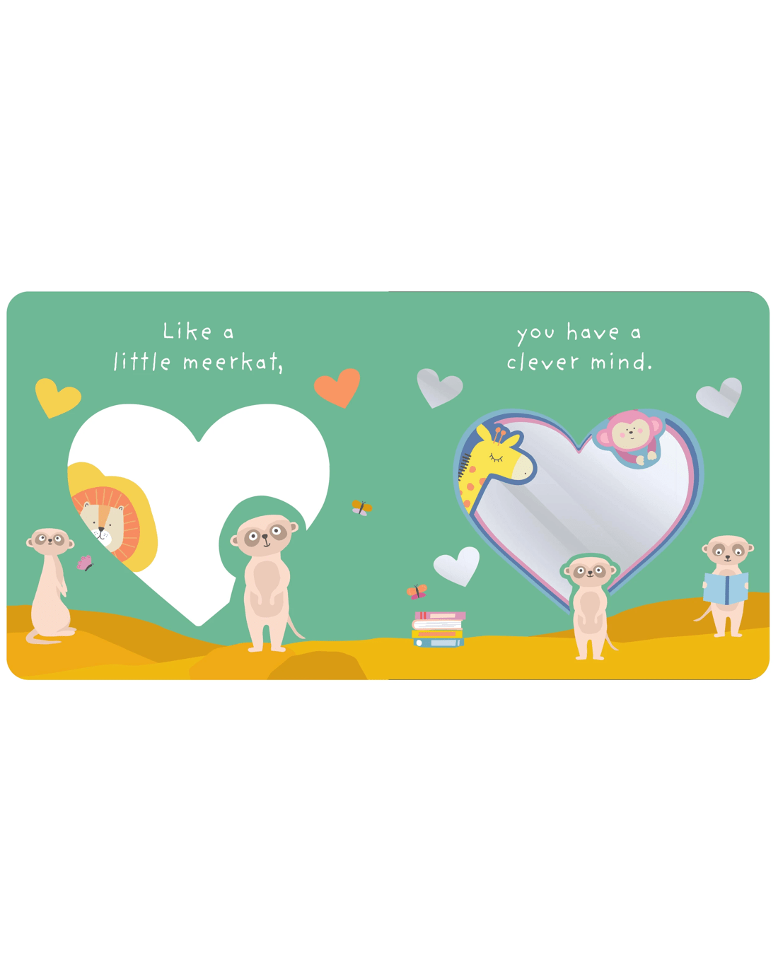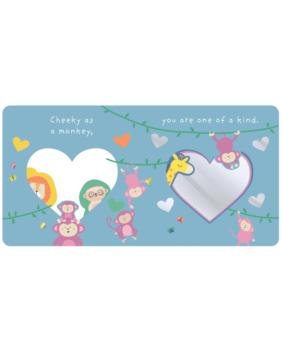 This sweet board book is designed to be enjoyed during cosy reading time between little ones and their caregivers and celebrates the beautiful message that children are loved just the way they are. Little ones will be captivated by sweet illustrations of animal friends playing with their families. Simple rhyming text will engage young readers time and time again. Graduating die-cuts lead to a mirror on the final spread that reveal the little reader’s own adorable face, inviting them to become part of the story.