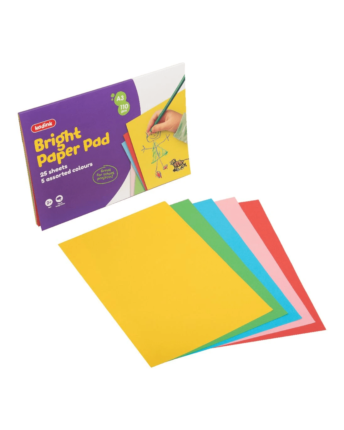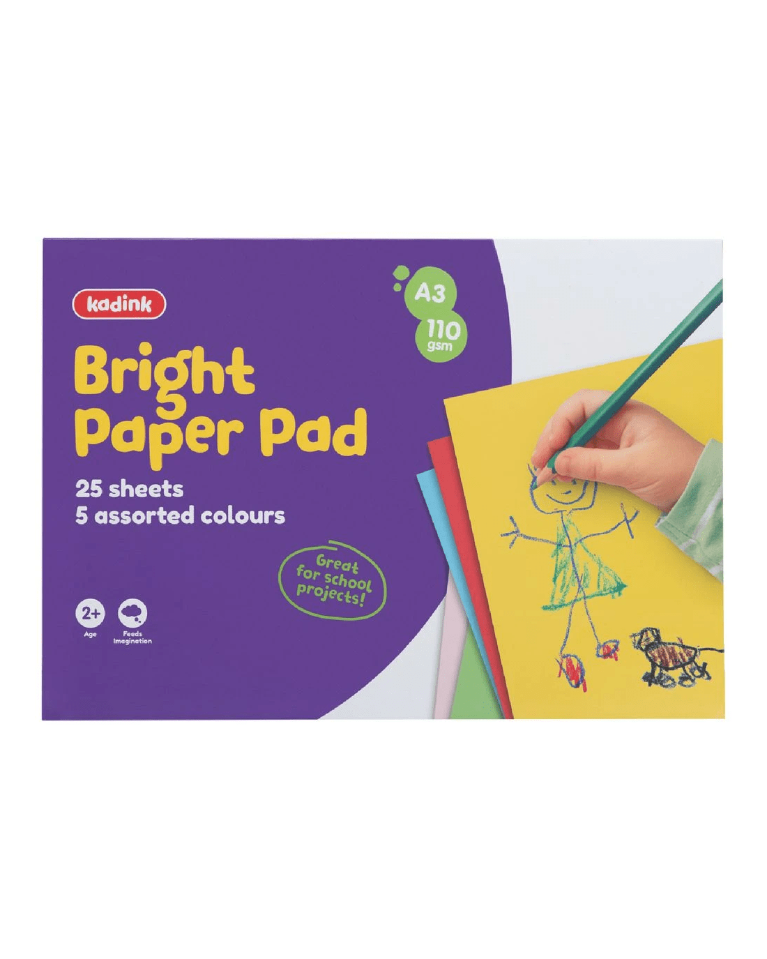 This Kadink A3 Paper Pad is a great addition to your art box and comes in handy for a range of craft activities. It contains 25 sheets of A3-sized paper in bright and fun colours. It is ideal for drawing, painting, collaging, colouring and more.