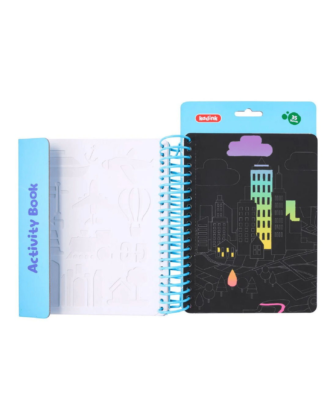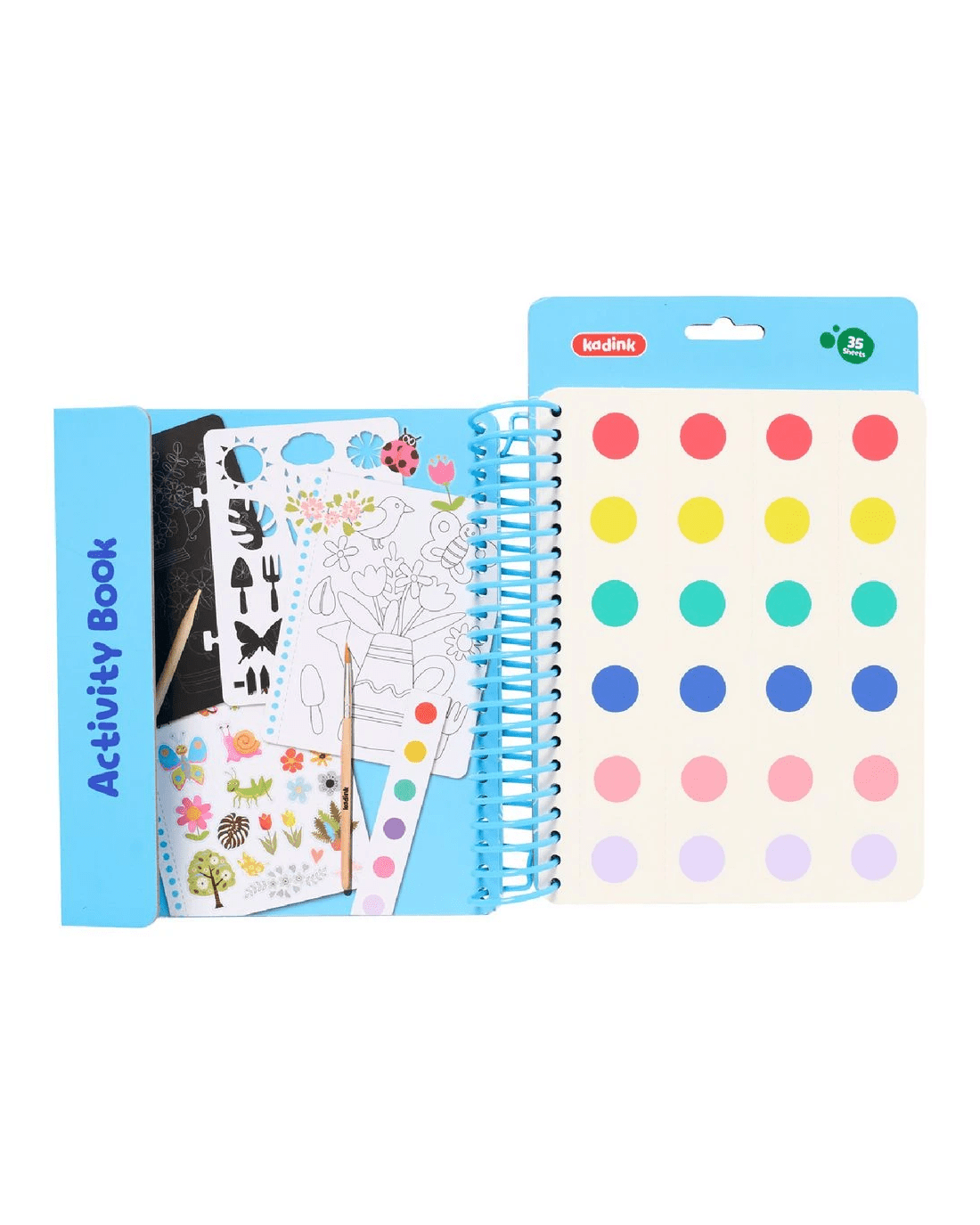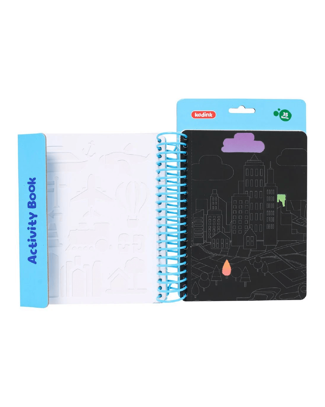 This Kadink Activity Book is a great way to pass the time with creative, colourful fun. It features a paint brush, scraping stick, 4 x pigment block sheets, 2 x sticker sheets, a stencil, 10 x scratch papers, 12 x single-page colouring papers and 6 x blank scene papers.
